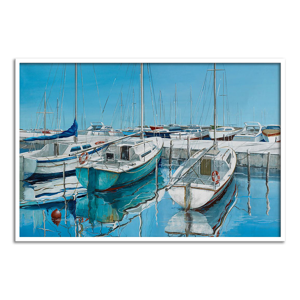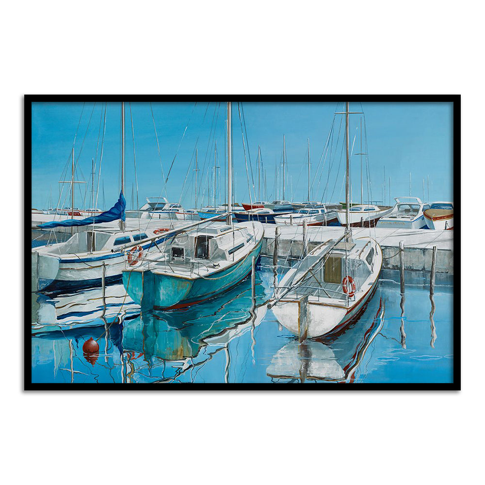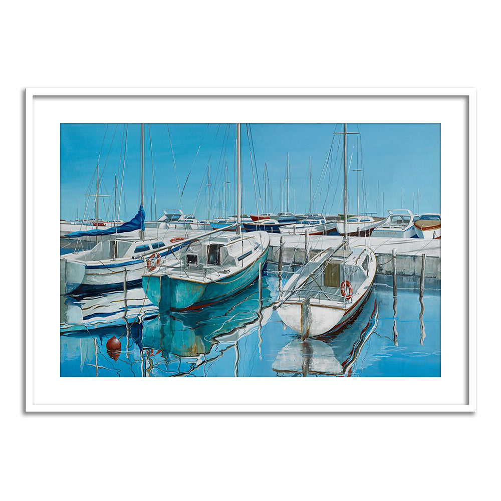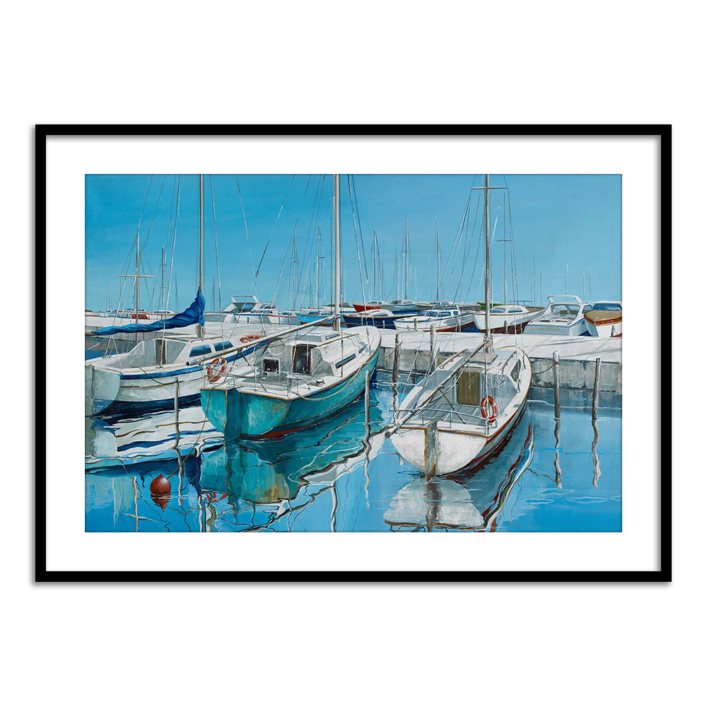 A high quality PVC frame with an off-white mount. Thickness of mount ranges from 1 - 4 inches depending on size of the artwork.