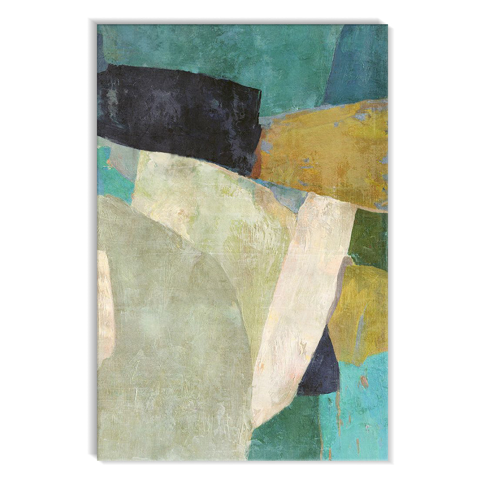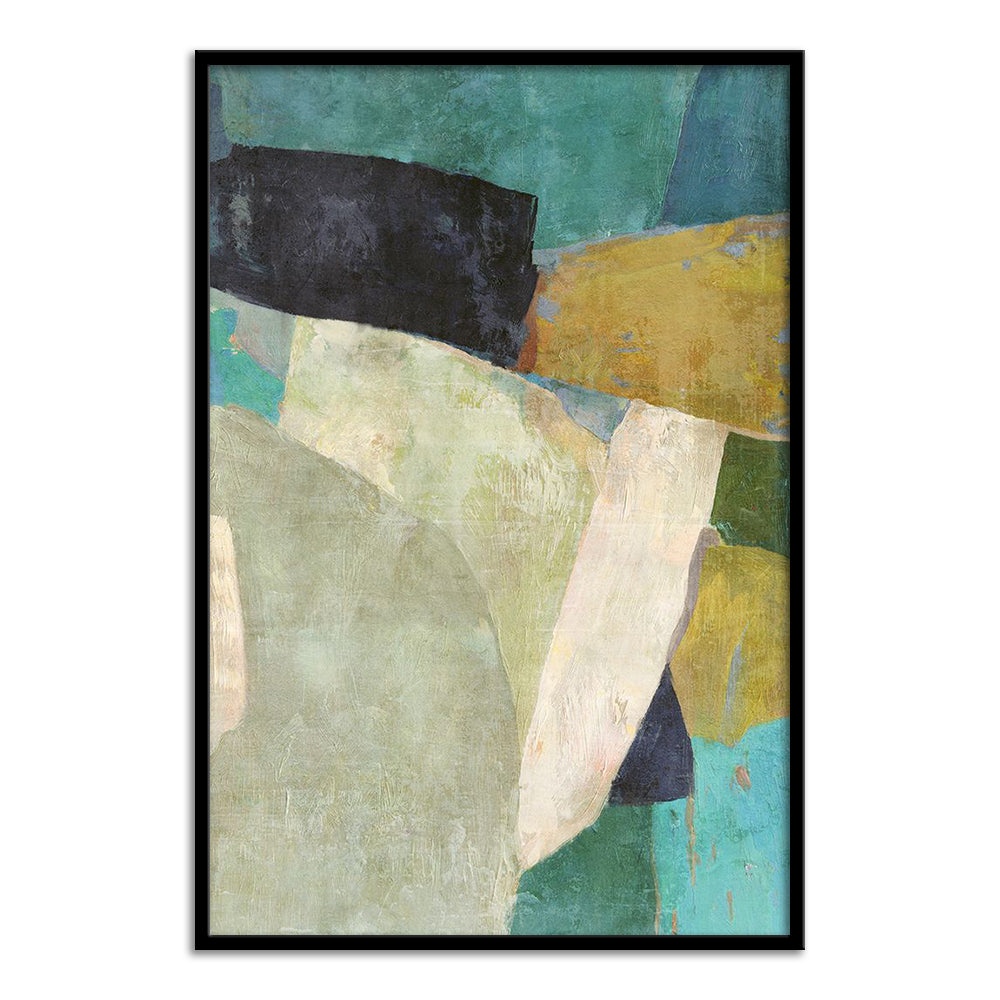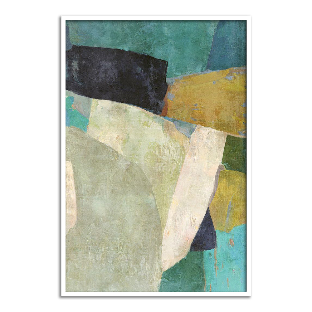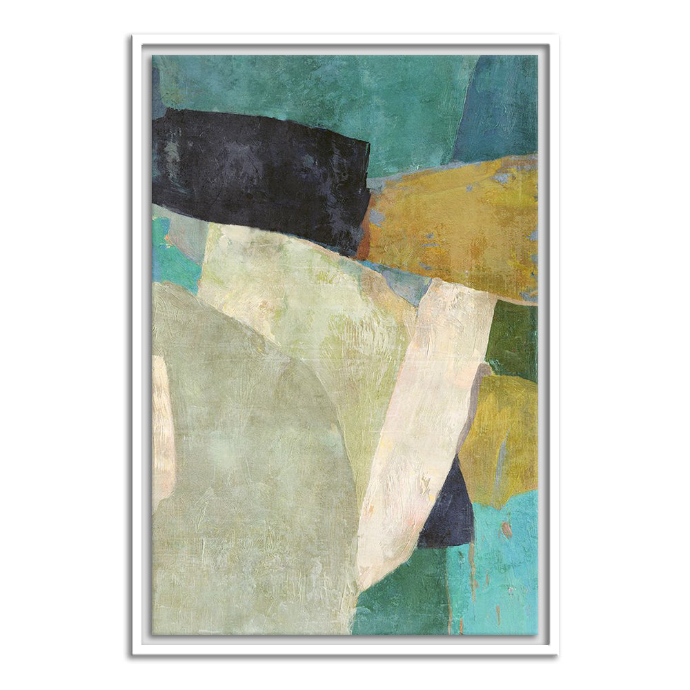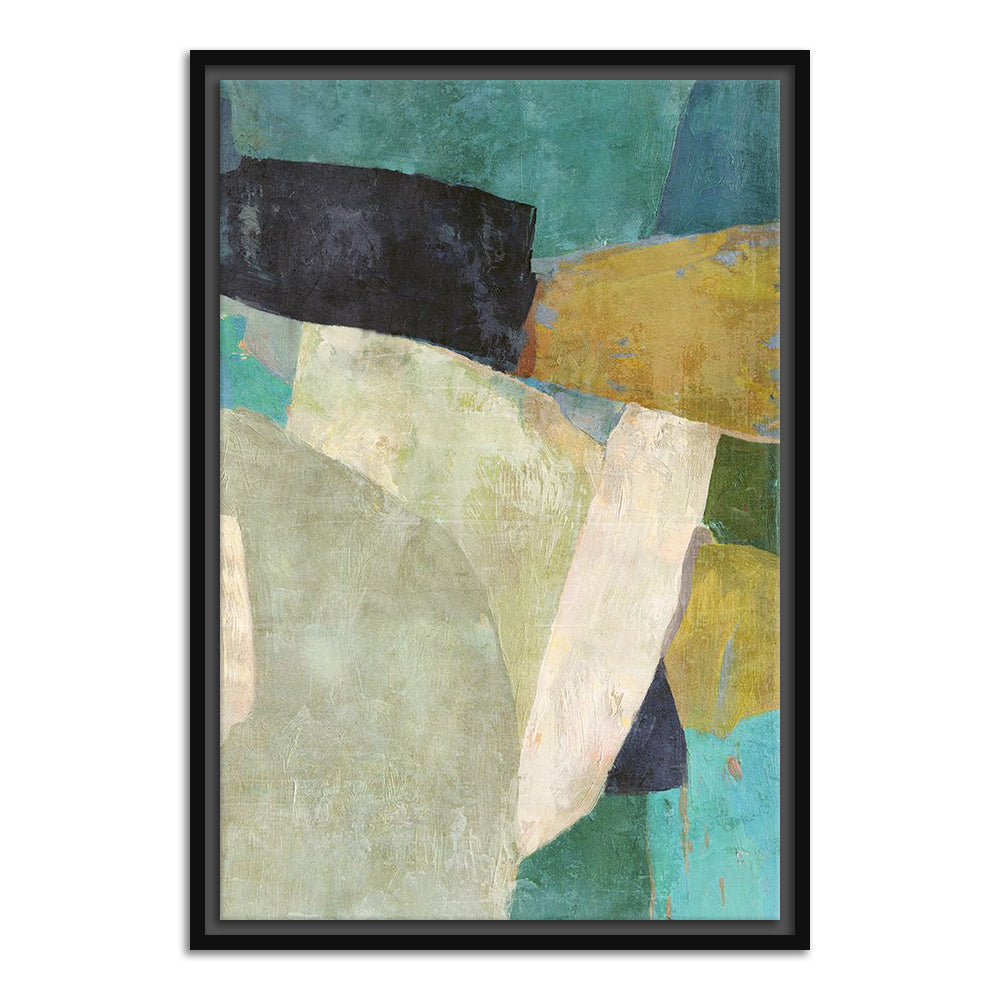 The canvas is wrapped and stretched similar to a gallery wrap and then mounted inside a wooden frame, leaving a small "gap", to create the illusion that the canvas is floating within the frame.