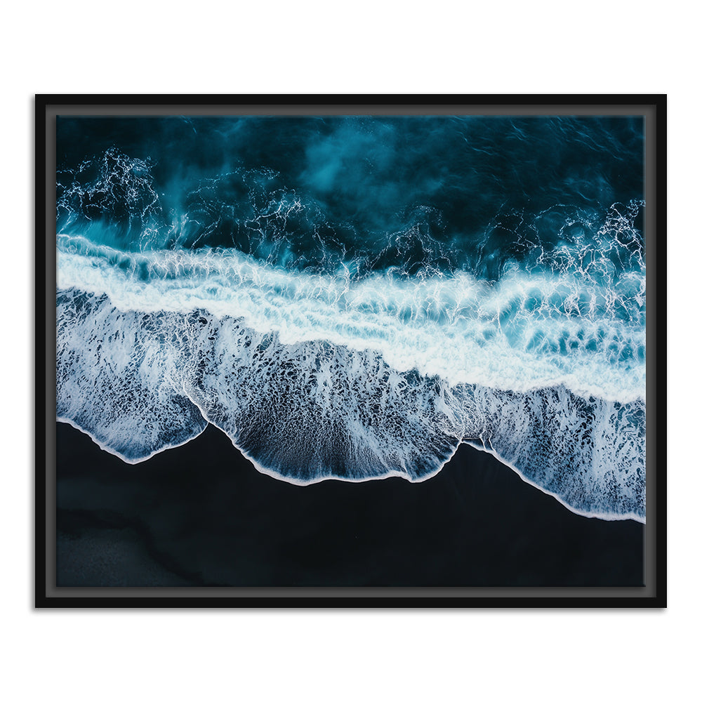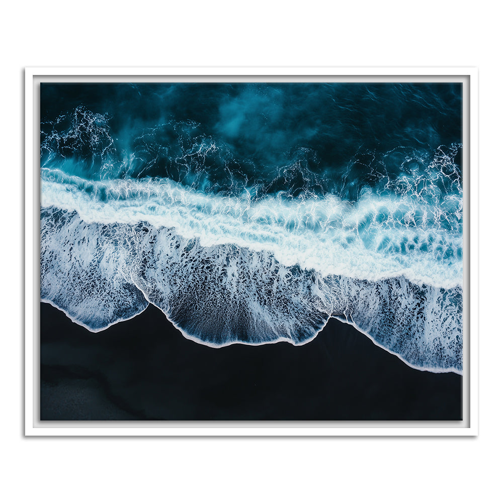 The canvas is wrapped and stretched similar to a gallery wrap and then mounted inside a wooden frame, leaving a small "gap", to create the illusion that the canvas is floating within the frame. Price: $$$