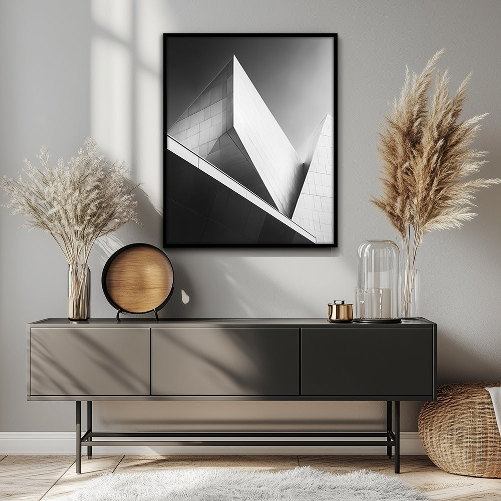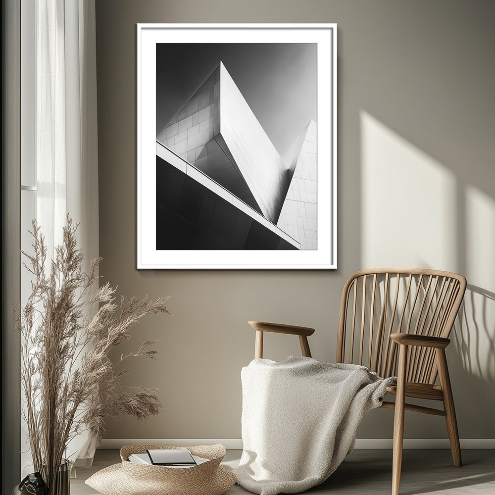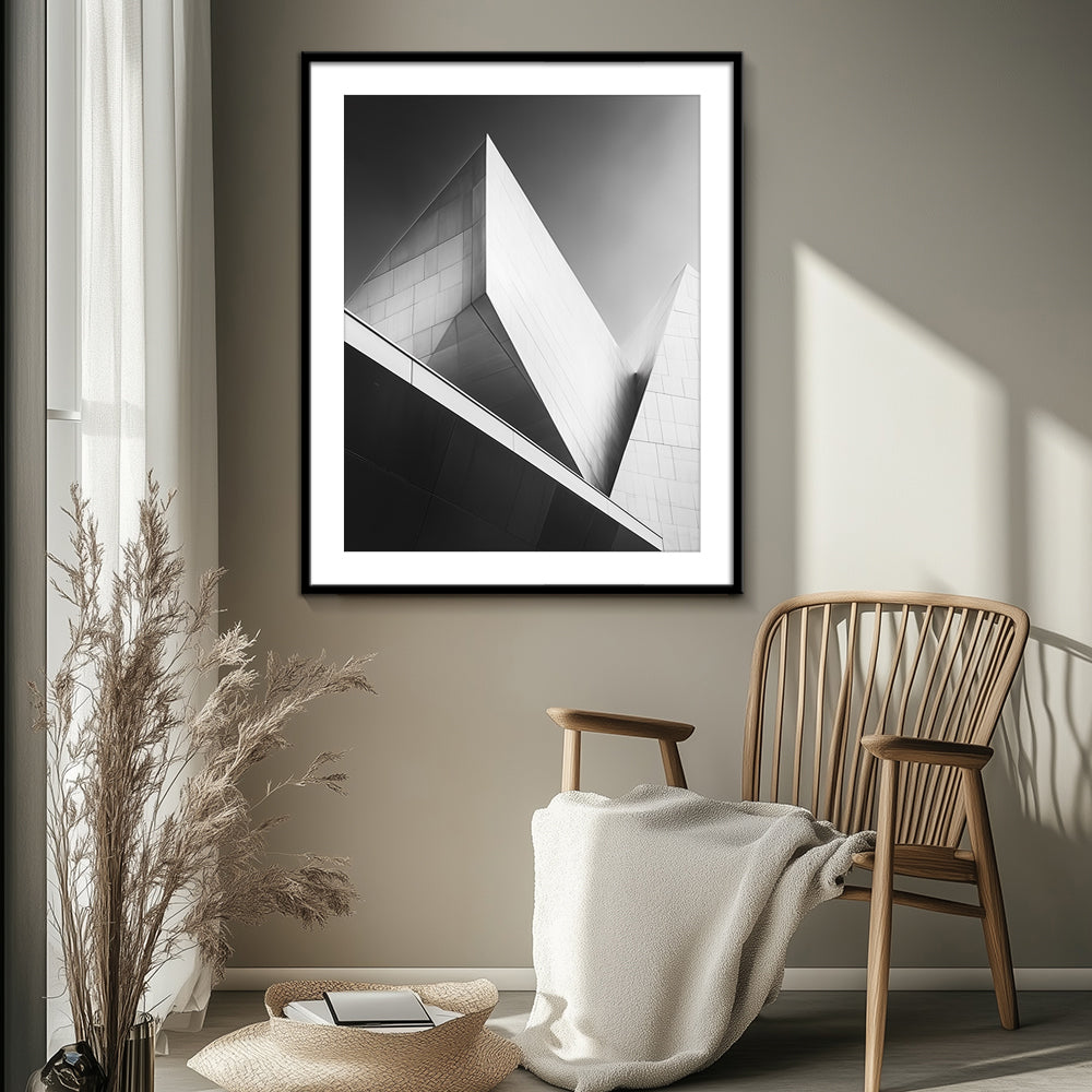 A high quality PVC frame with a front thickness of 0.5 inch and a depth of 1 inch. The artwork is protected by a layer of clear glass or acrylic. Price: $