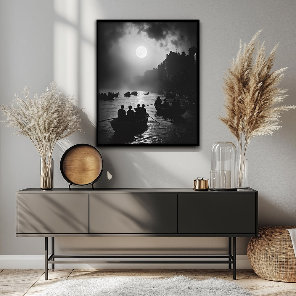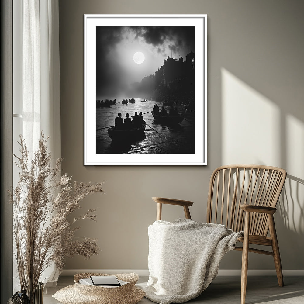 A high quality PVC frame with an off-white mount. Thickness of mount ranges from 1 - 4 inches depending on size of the artwork. The artwork is protected by a layer of clear glass or acrylic. Price: $$