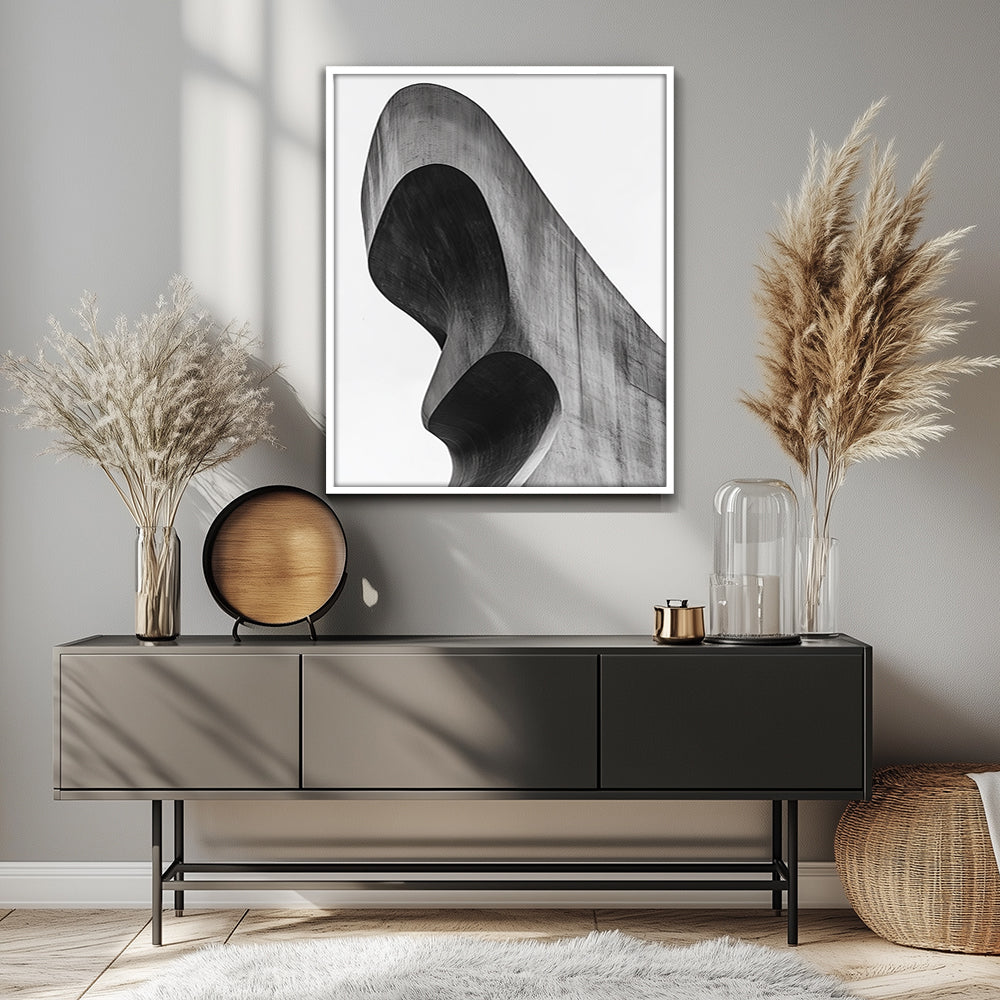 A high quality PVC frame with a front thickness of 0.5 inch and a depth of 1 inch. The artwork is protected by a layer of clear glass or acrylic. Price: $