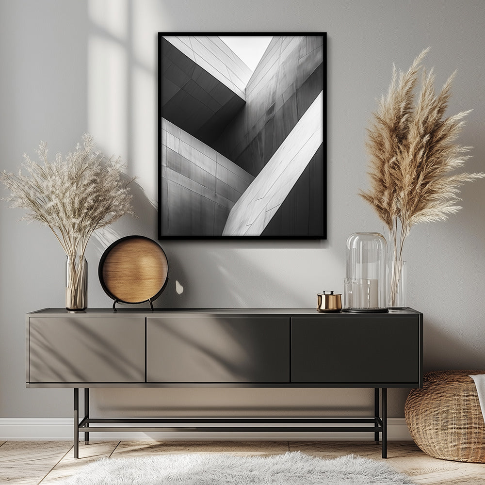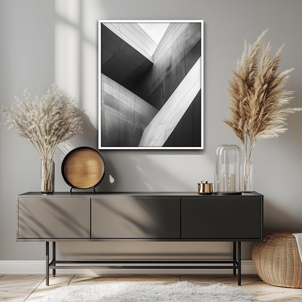 A high quality PVC frame with a front thickness of 0.5 inch and a depth of 1 inch. The artwork is protected by a layer of clear glass or acrylic. Price: $