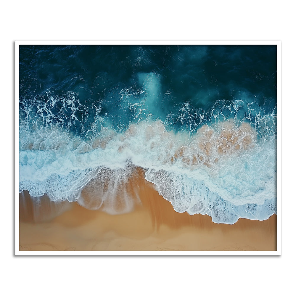 A high quality PVC frame with a front thickness of 0.5 inch and a depth of 1 inch. The artwork is protected by a layer of clear glass or acrylic. Price: $