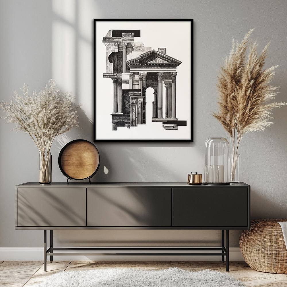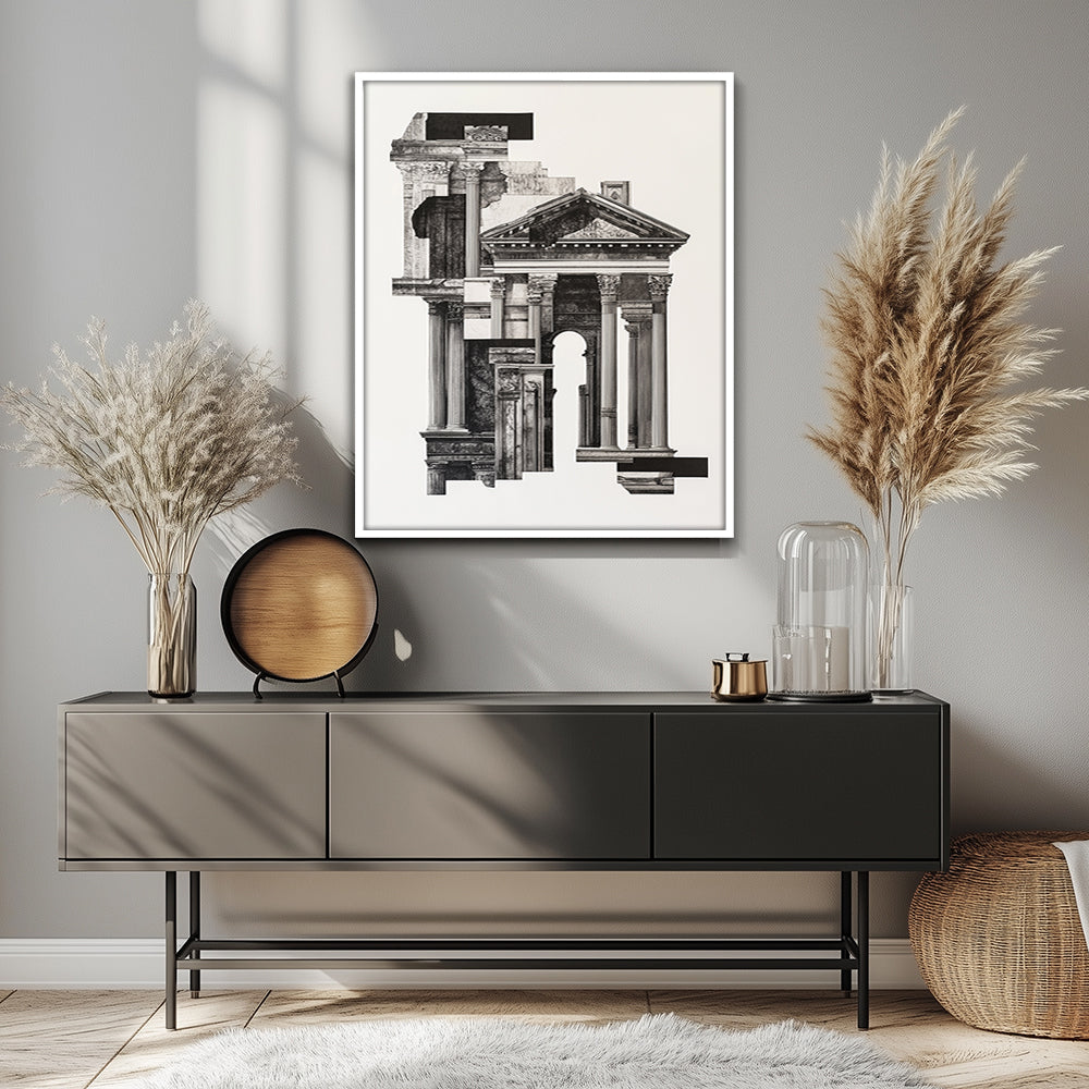 A high quality PVC frame with a front thickness of 0.5 inch and a depth of 1 inch. The artwork is protected by a layer of clear glass or acrylic. Price: $