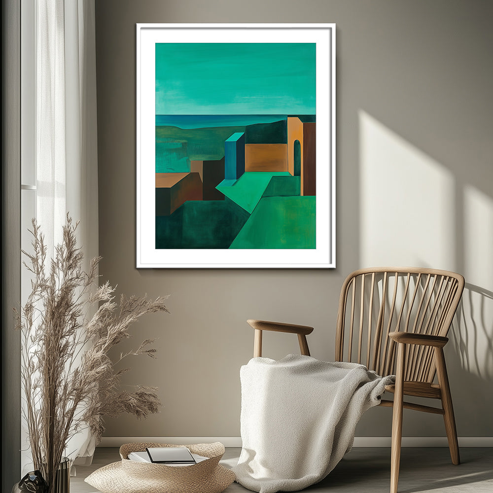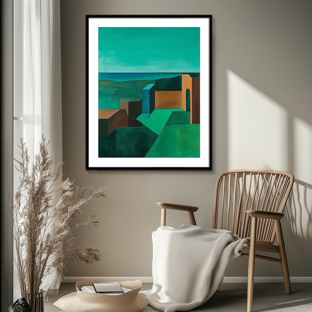 A high quality PVC frame with an off-white mount. Thickness of mount ranges from 1 - 4 inches depending on size of the artwork. The artwork is protected by a layer of clear glass or acrylic. Price: $$