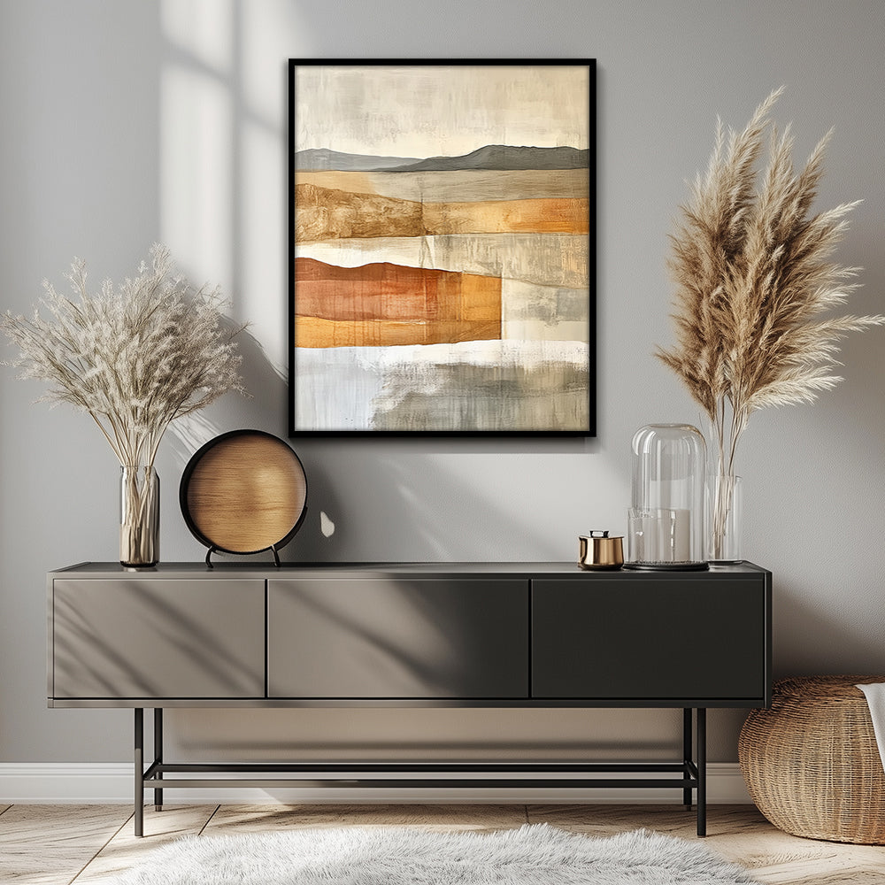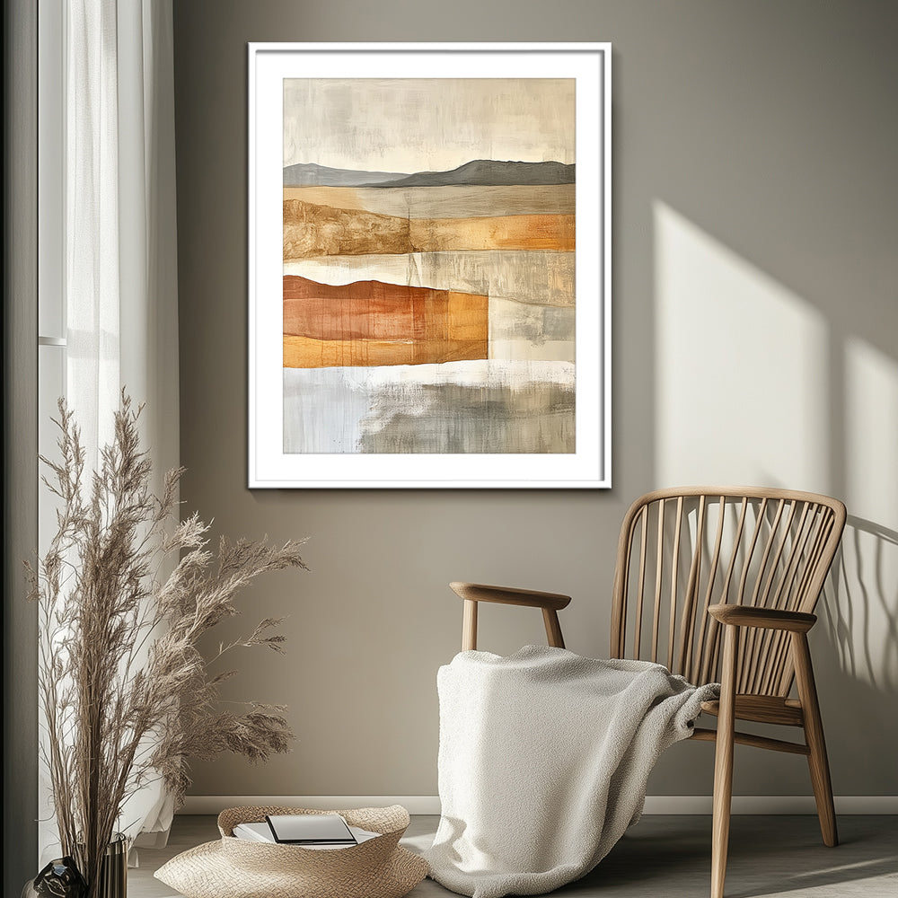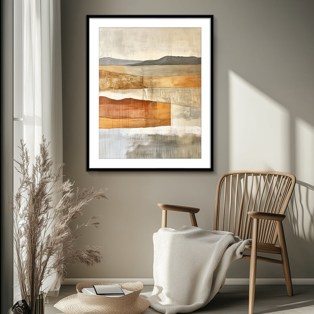 A high quality PVC frame with an off-white mount. Thickness of mount ranges from 1 - 4 inches depending on size of the artwork. The artwork is protected by a layer of clear glass or acrylic. Price: $$