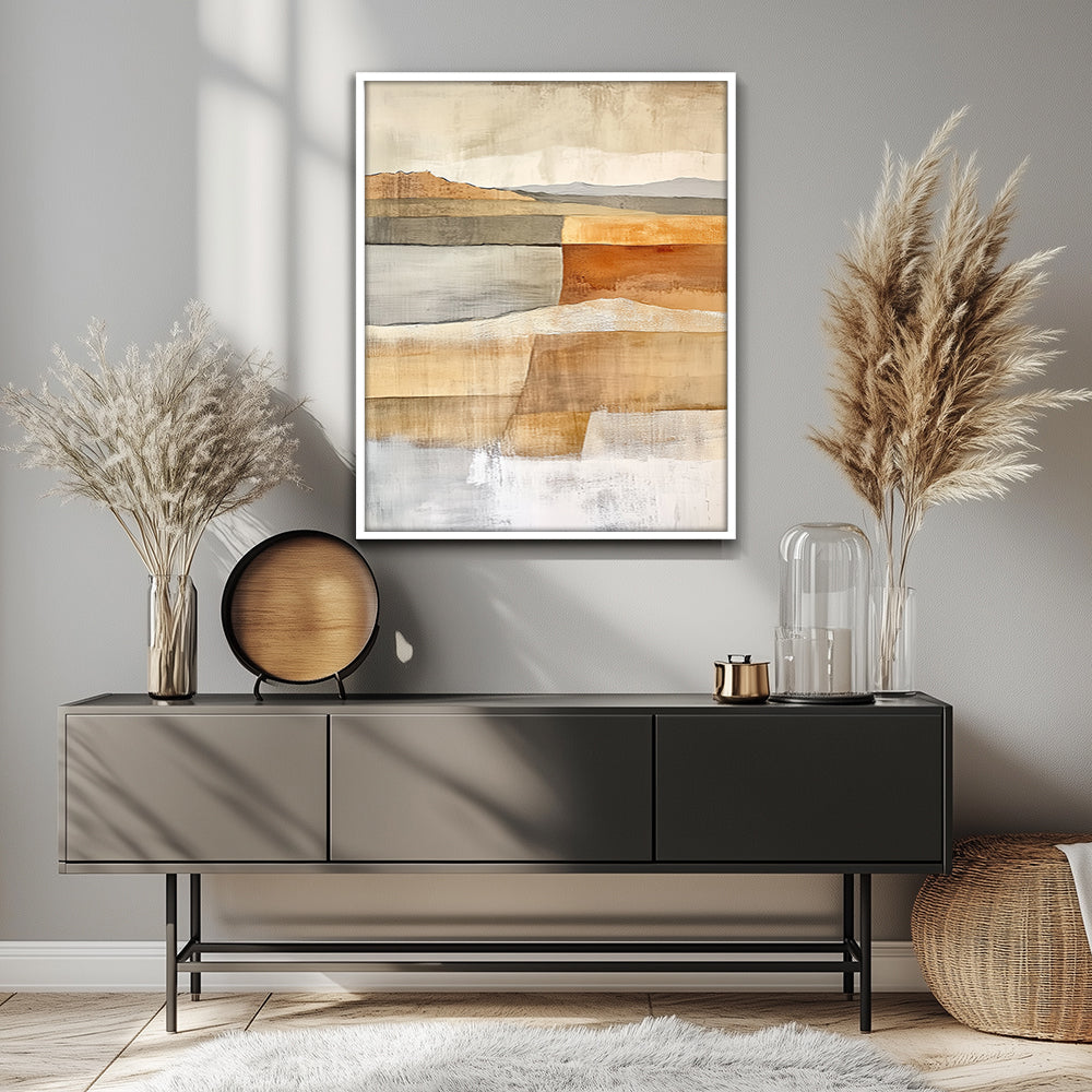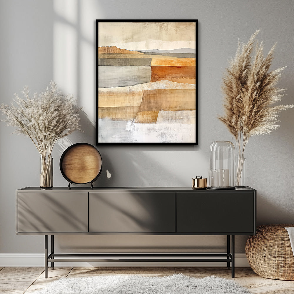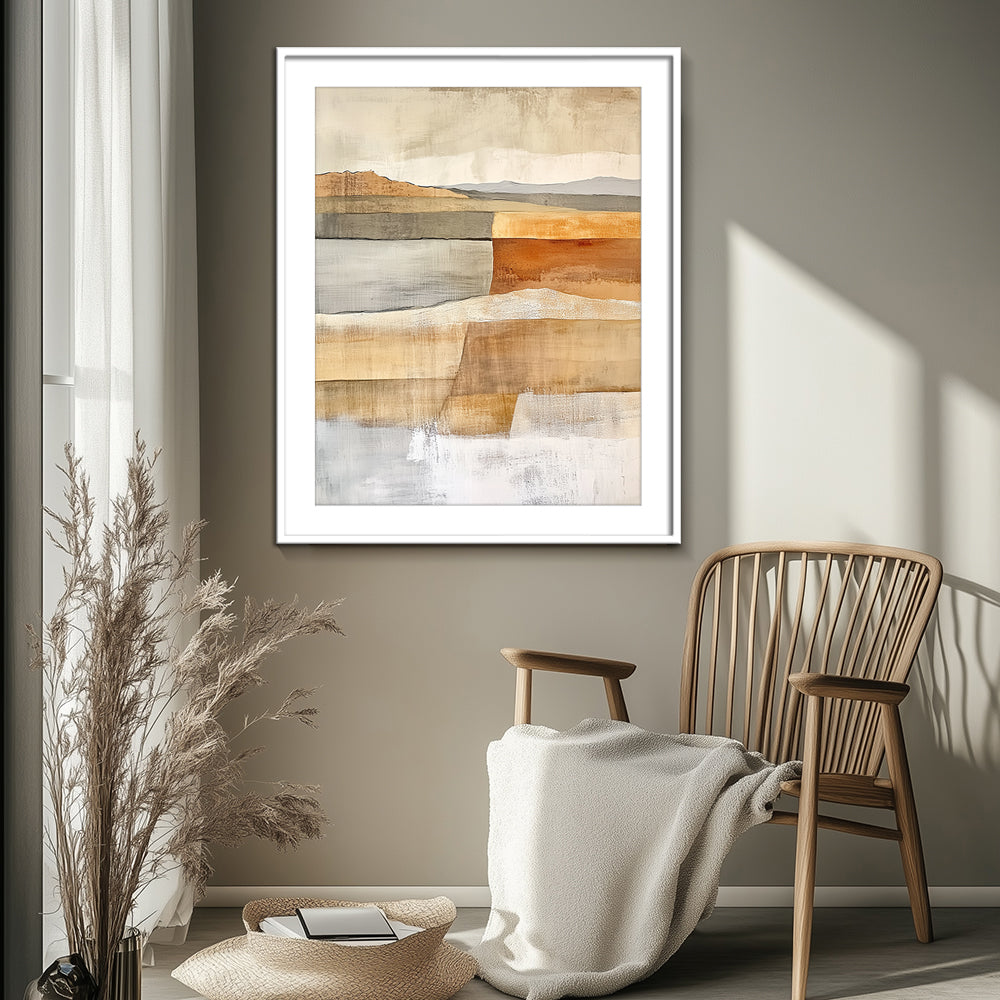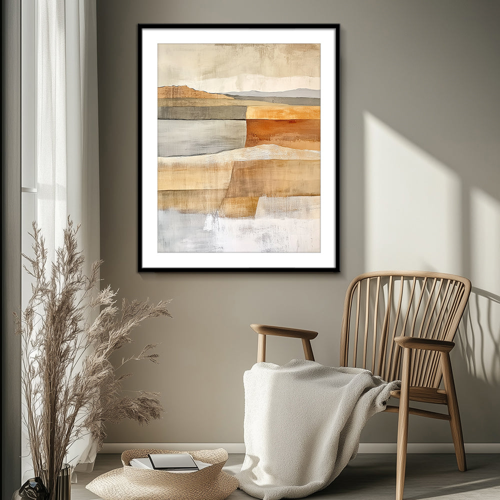 A high quality PVC frame with an off-white mount. Thickness of mount ranges from 1 - 4 inches depending on size of the artwork. The artwork is protected by a layer of clear glass or acrylic. Price: $$