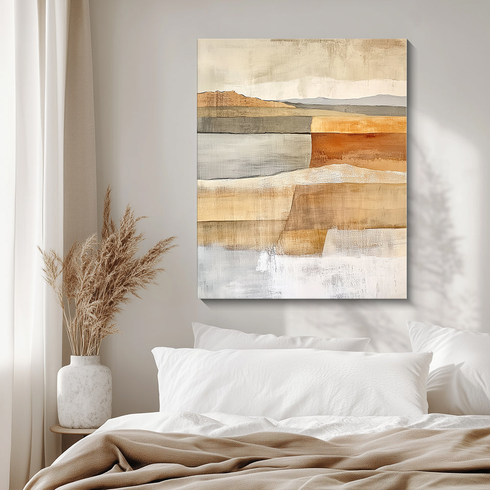 The canvas is stretched and wrapped around the sides of the stretcher bar and is secured to the back of the wooden frame. Price: $