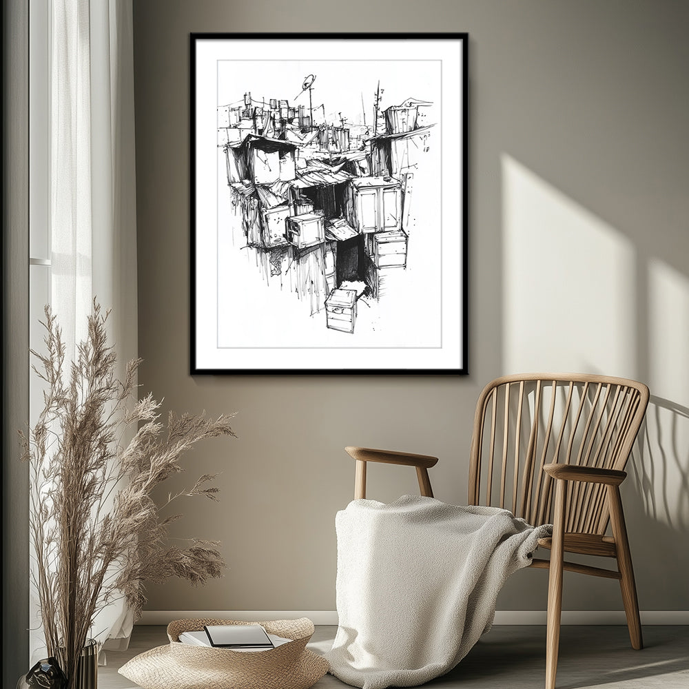 A high quality PVC frame with an off-white mount. Thickness of mount ranges from 1 - 4 inches depending on size of the artwork. The artwork is protected by a layer of clear glass or acrylic. Price: $$