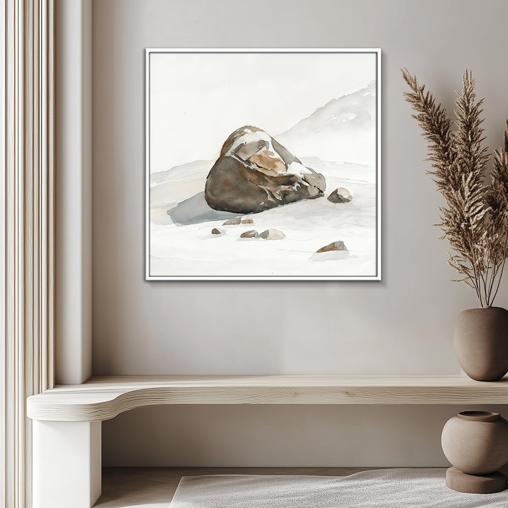 The canvas is wrapped and stretched similar to a gallery wrap and then mounted inside a wooden frame, leaving a small "gap", to create the illusion that the canvas is floating within the frame. Price: $$$