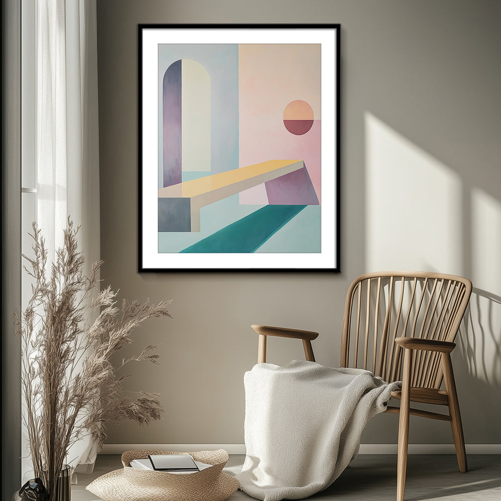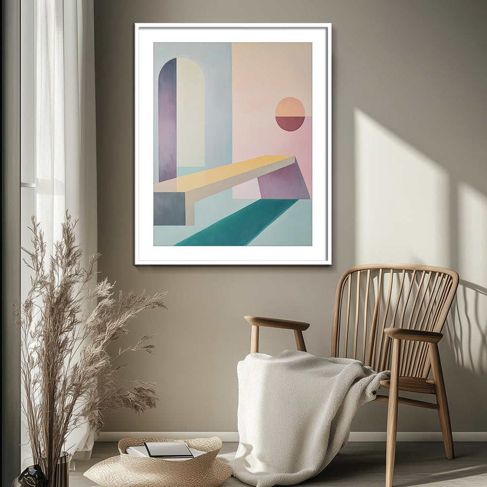 A high quality PVC frame with an off-white mount. Thickness of mount ranges from 1 - 4 inches depending on size of the artwork. The artwork is protected by a layer of clear glass or acrylic. Price: $$