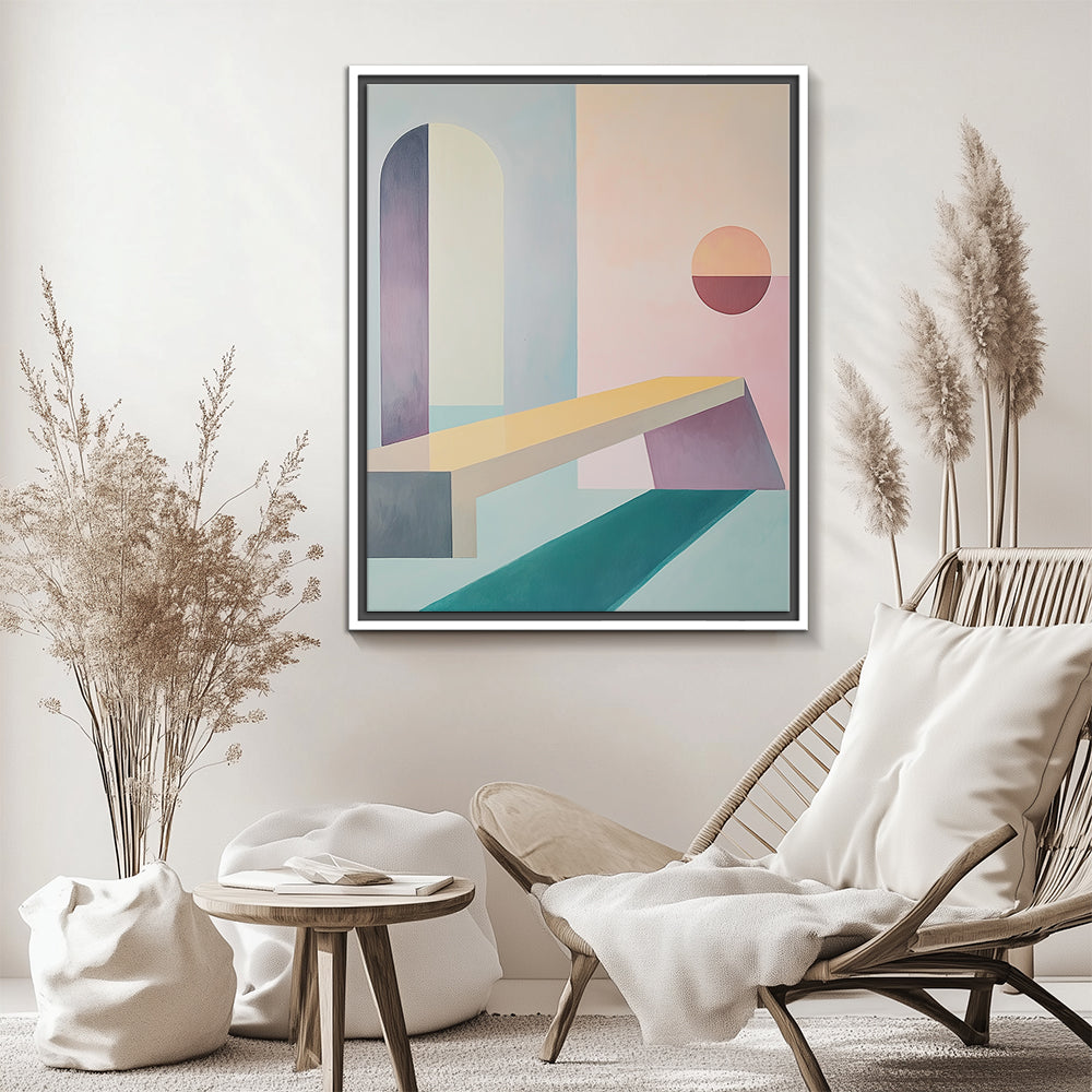 The canvas is wrapped and stretched similar to a gallery wrap and then mounted inside a wooden frame, leaving a small "gap", to create the illusion that the canvas is floating within the frame. Price: $$$