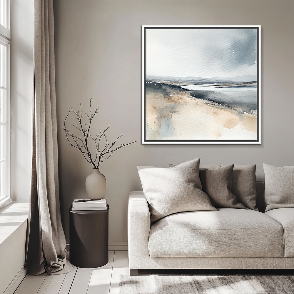 The canvas is wrapped and stretched similar to a gallery wrap and then mounted inside a wooden frame, leaving a small "gap", to create the illusion that the canvas is floating within the frame. Price: $$$