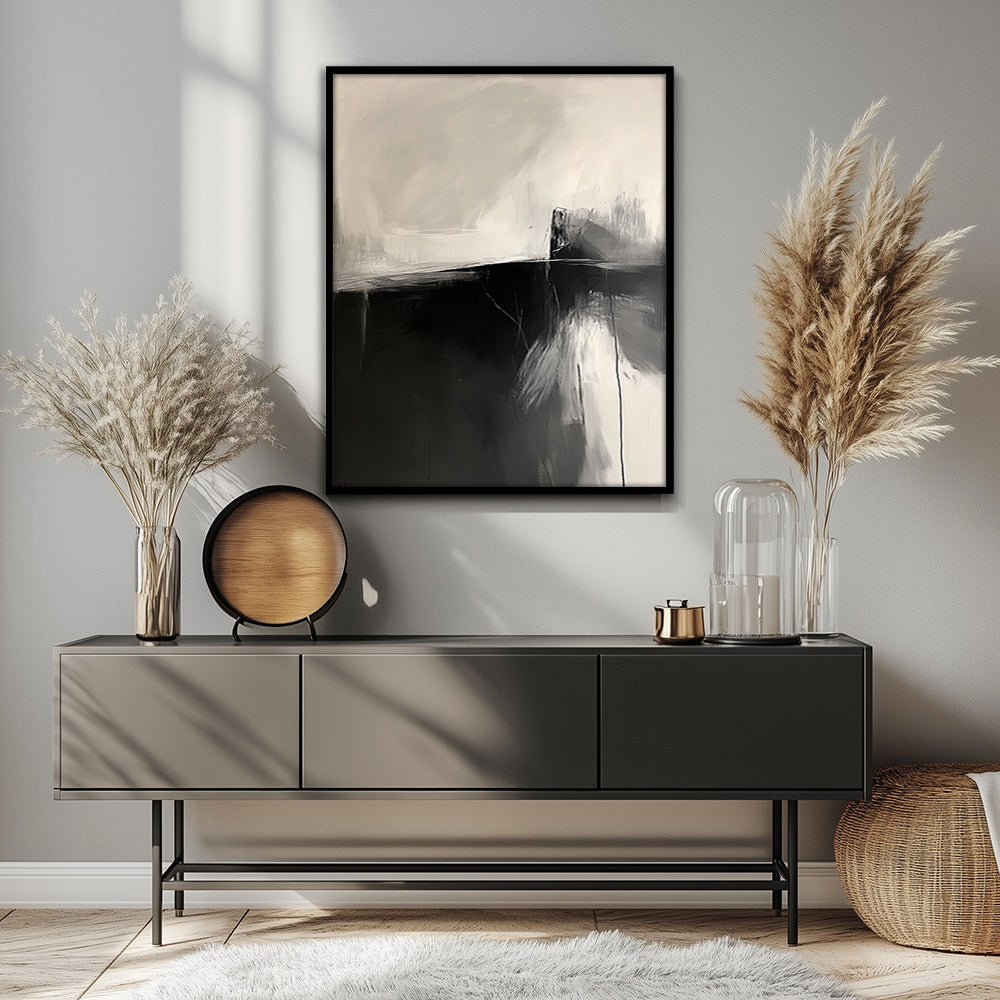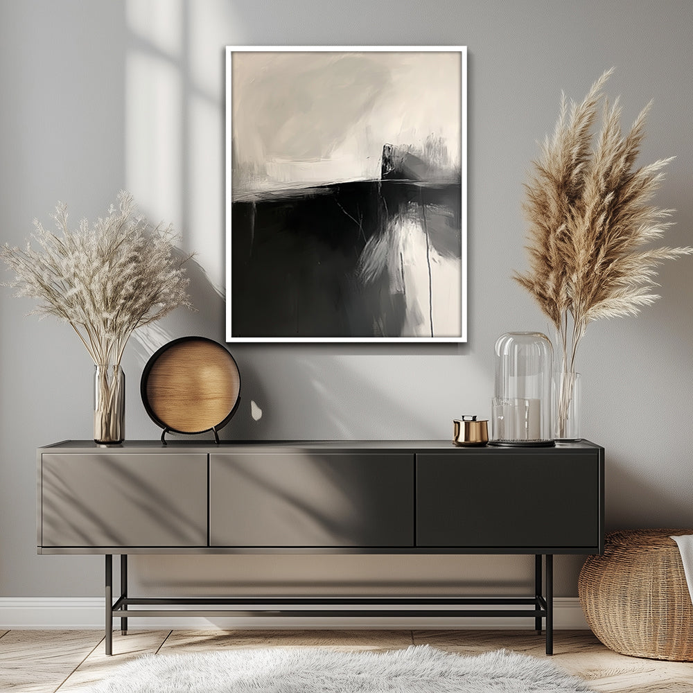 A high quality PVC frame with an off-white mount. Thickness of mount ranges from 1 - 4 inches depending on size of the artwork. The artwork is protected by a layer of clear glass or acrylic. Price: $$
