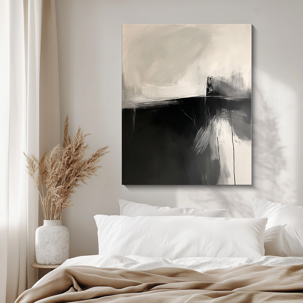 The canvas is stretched and wrapped around the sides of the stretcher bar and is secured to the back of the wooden frame. Price: $