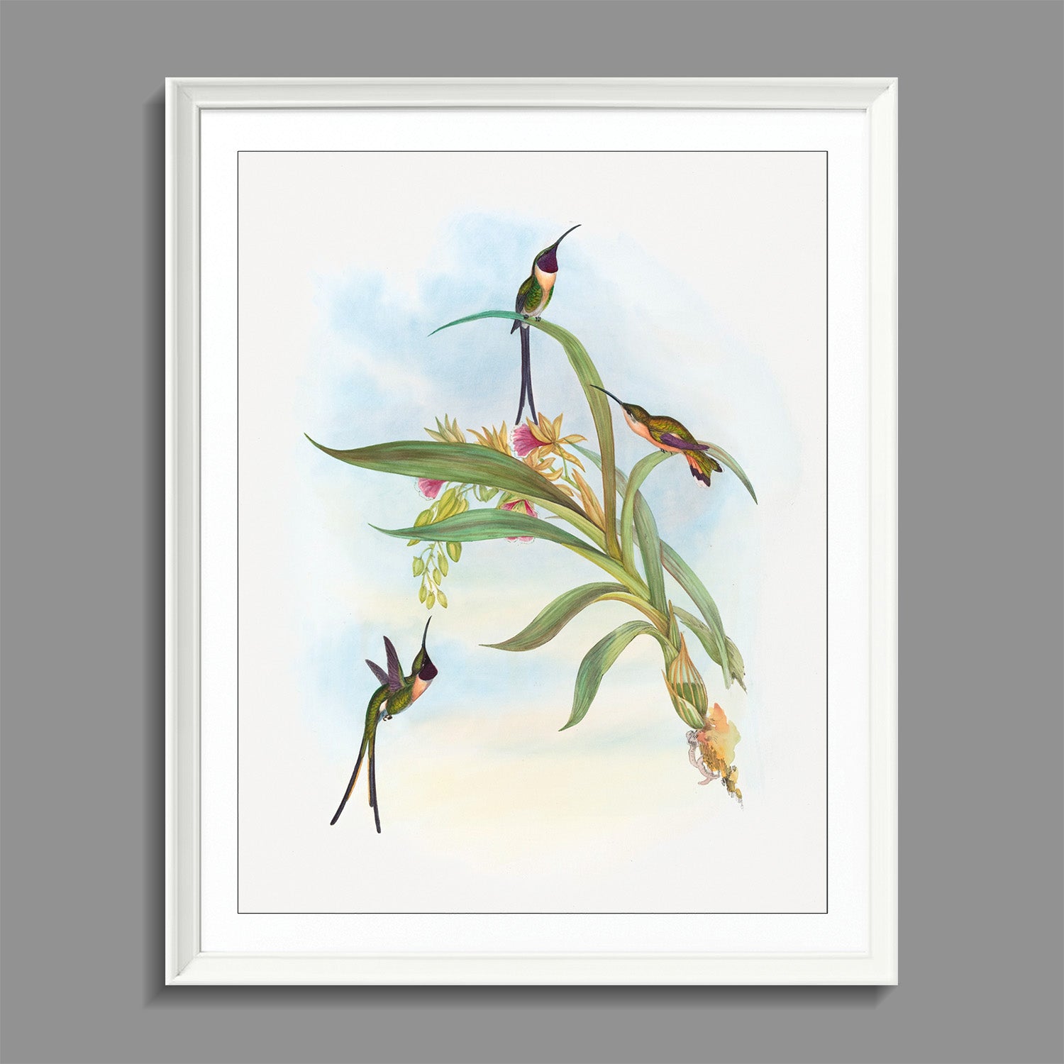 A ready-to-hang, high quality PVC frame with a PH-neutral mount and an acrylic front for protection. Thickness of mount depends on the size of the artwork.