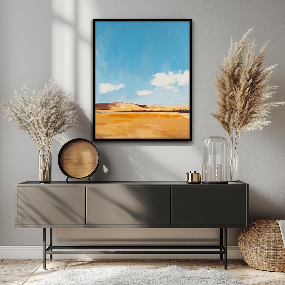 A high quality PVC frame with an off-white mount. Thickness of mount ranges from 1 - 4 inches depending on size of the artwork. The artwork is protected by a layer of clear glass or acrylic. Price: $$