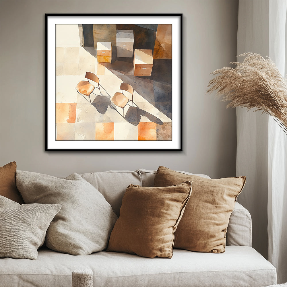 A high quality PVC frame with an off-white mount. Thickness of mount ranges from 1 - 4 inches depending on size of the artwork. The artwork is protected by a layer of clear glass or acrylic. Price: $$
