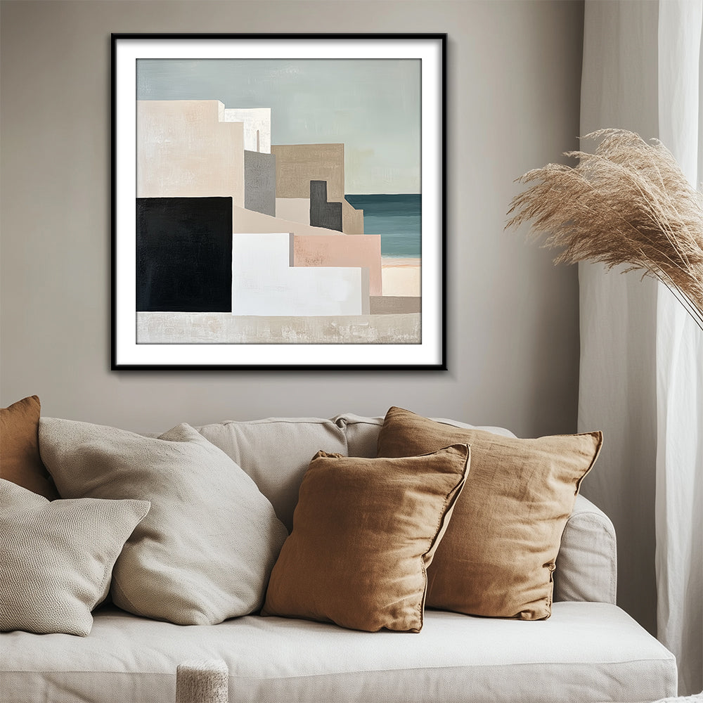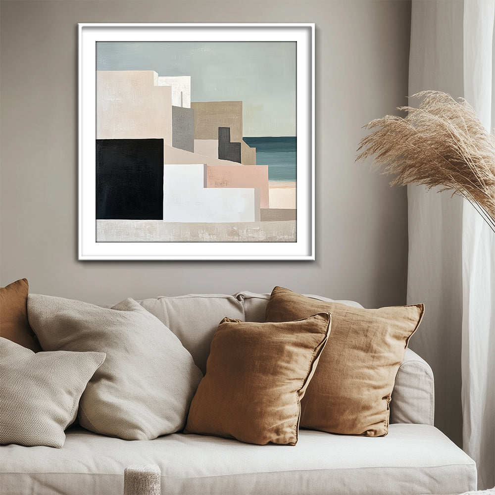 A high quality PVC frame with an off-white mount. Thickness of mount ranges from 1 - 4 inches depending on size of the artwork. The artwork is protected by a layer of clear glass or acrylic. Price: $$
