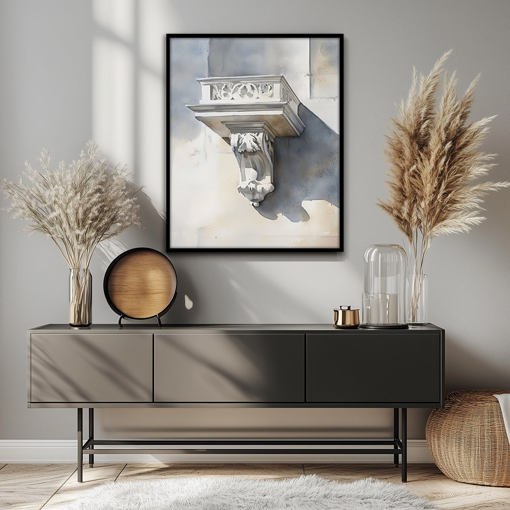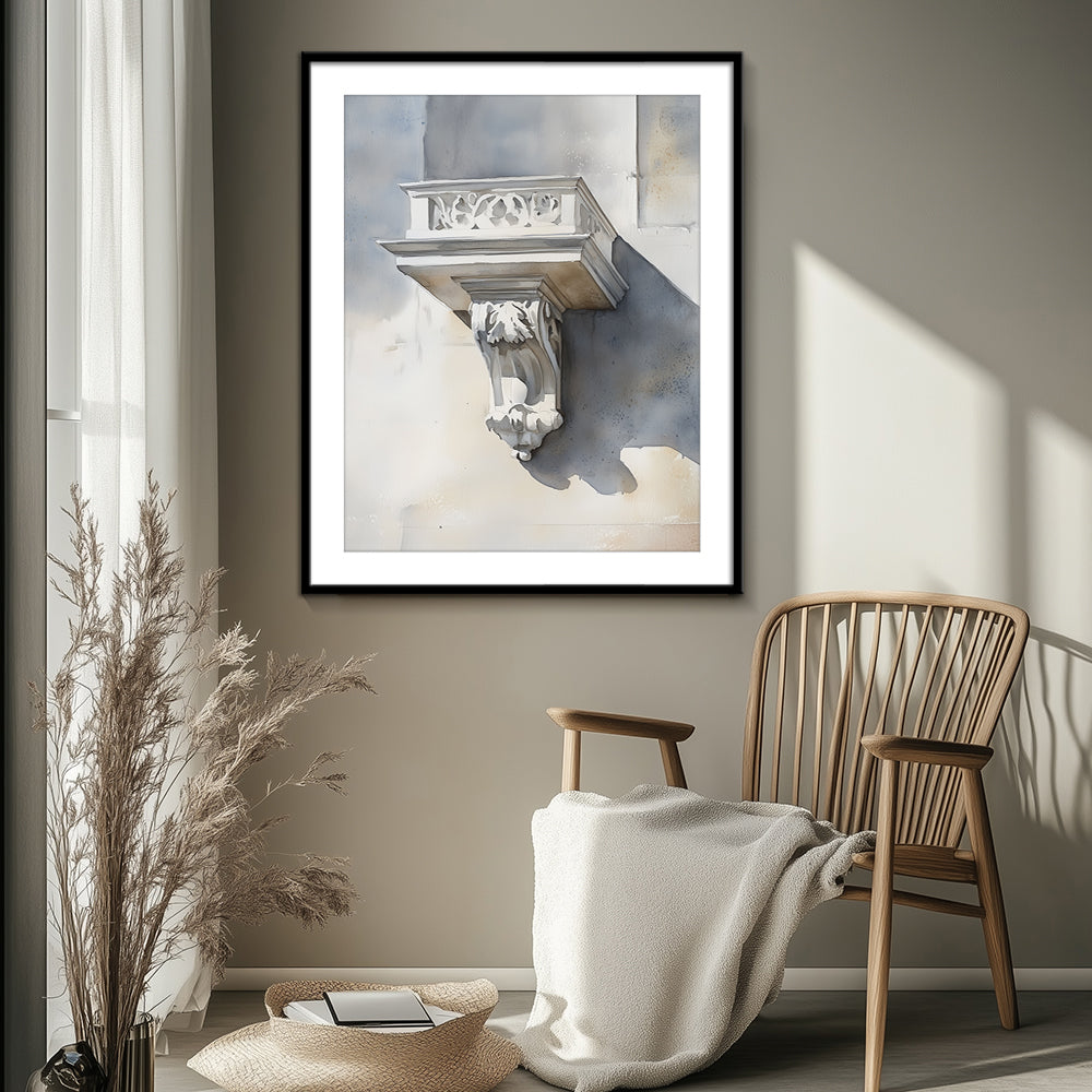 A high quality PVC frame with a front thickness of 0.5 inch and a depth of 1 inch. The artwork is protected by a layer of clear glass or acrylic. Price: $