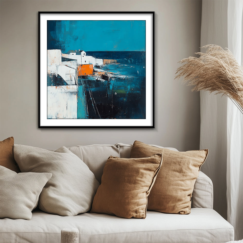 A high quality PVC frame with a front thickness of 0.5 inch and a depth of 1 inch. The artwork is protected by a layer of clear glass or acrylic. Price: $