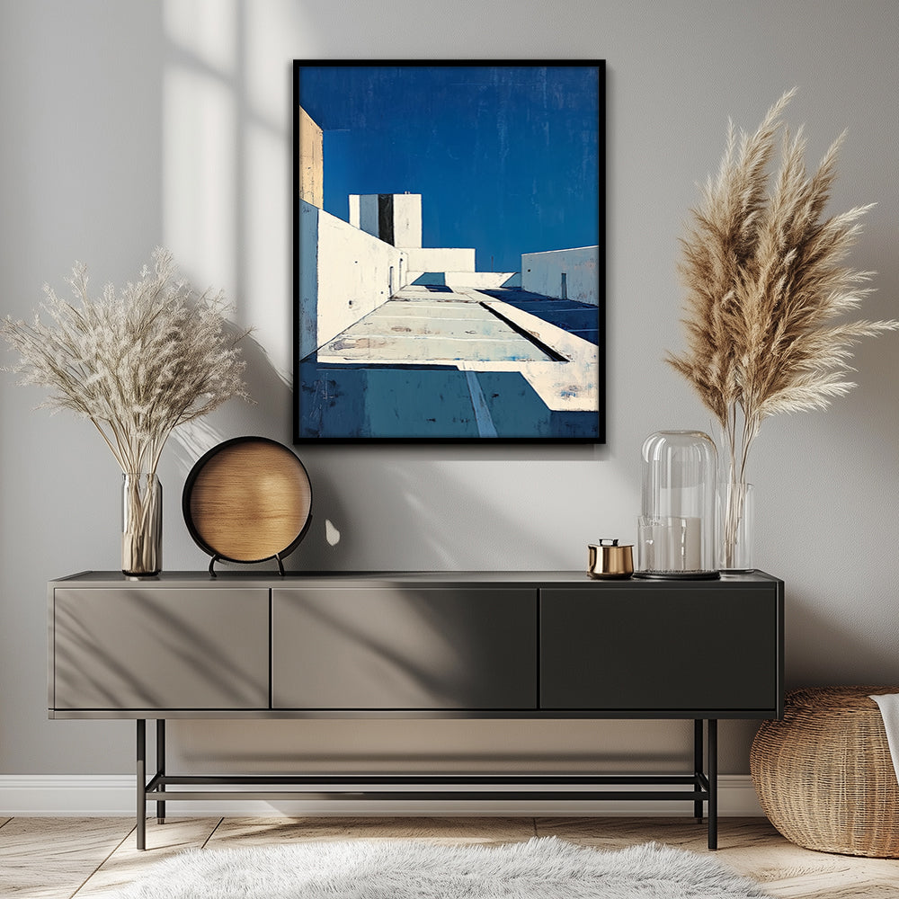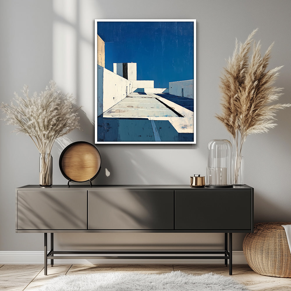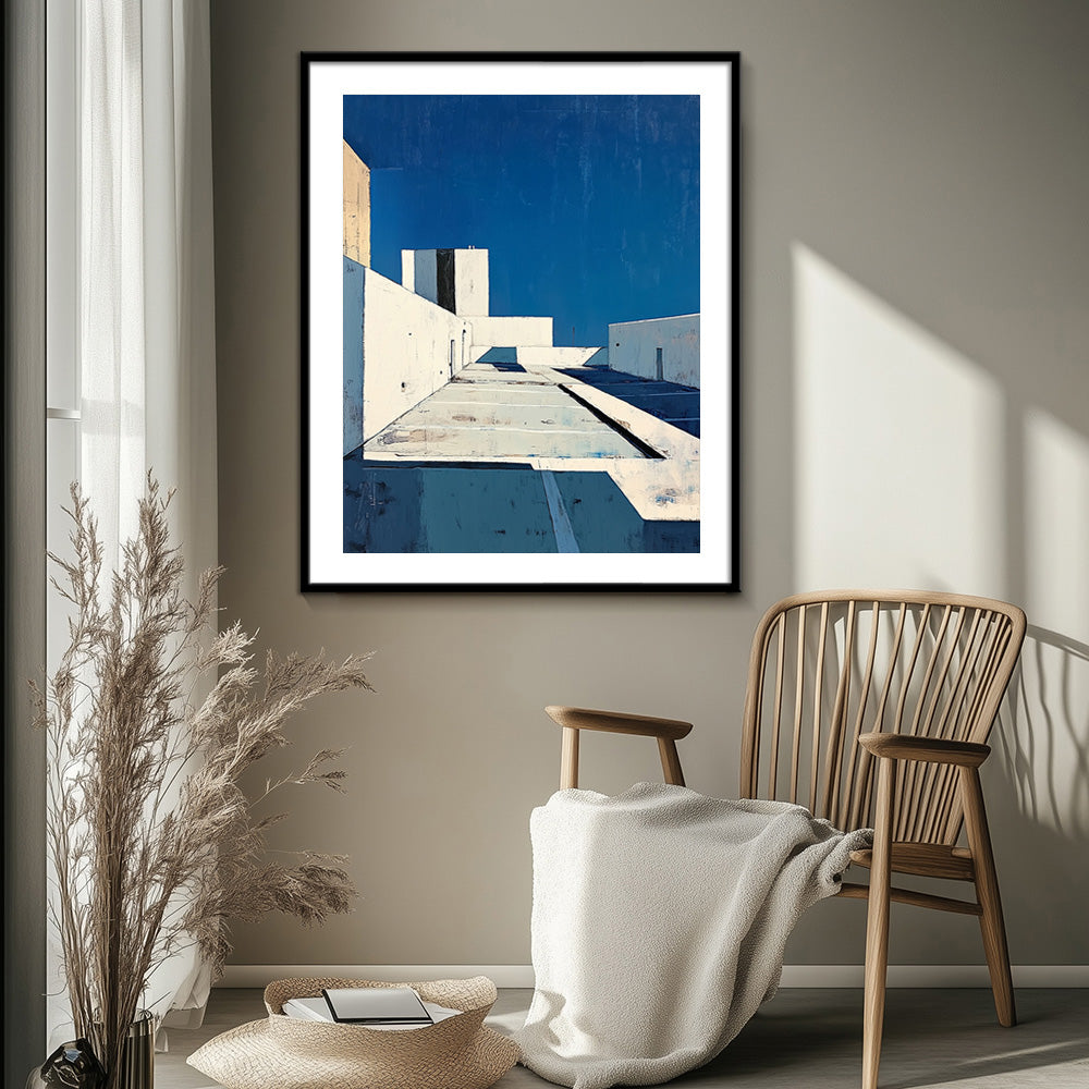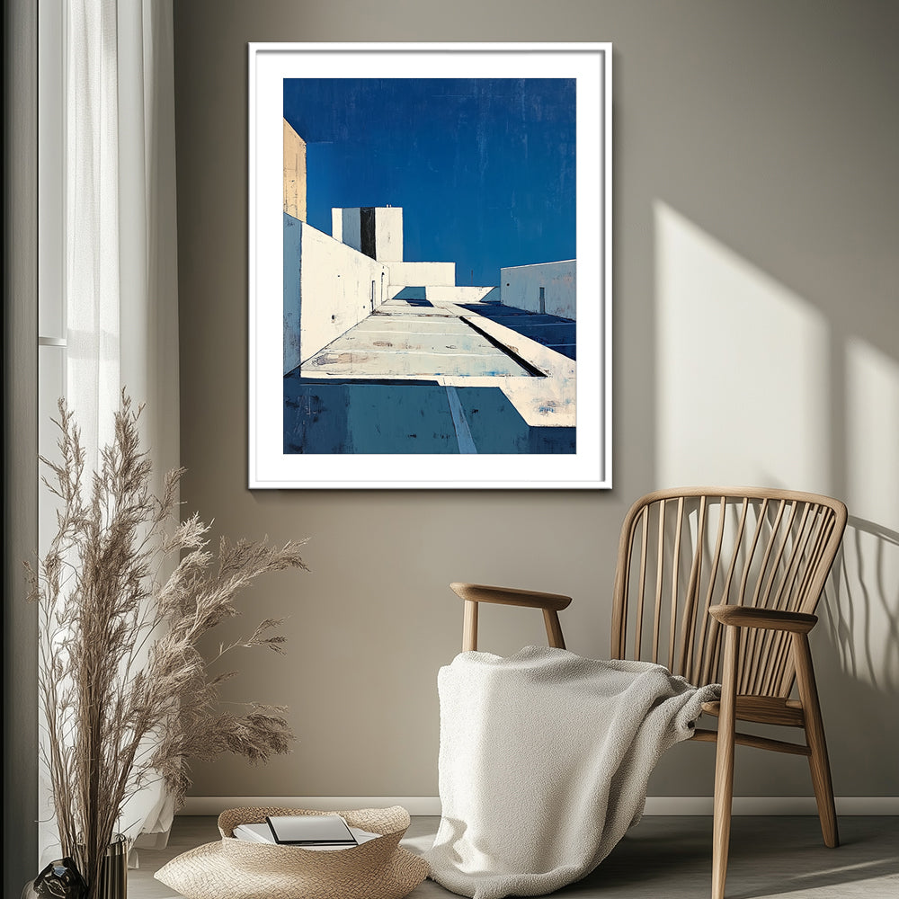 A high quality PVC frame with an off-white mount. Thickness of mount ranges from 1 - 4 inches depending on size of the artwork. The artwork is protected by a layer of clear glass or acrylic. Price: $$