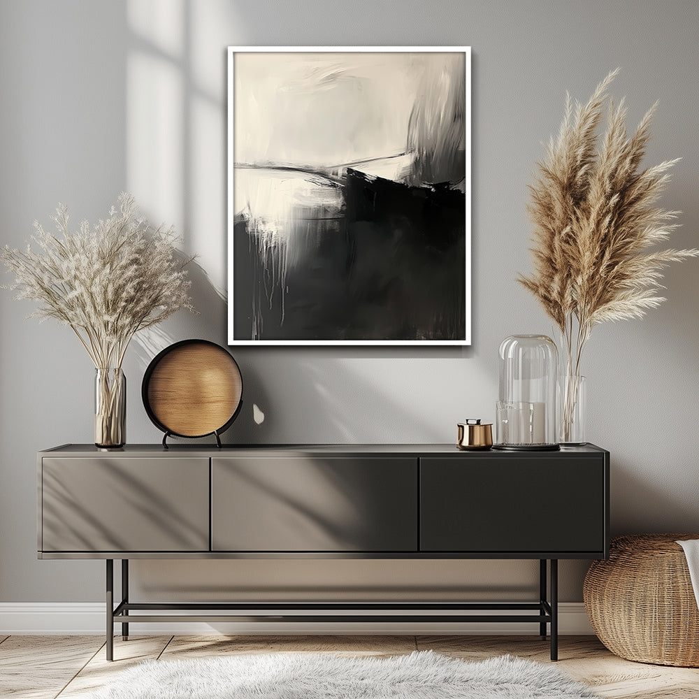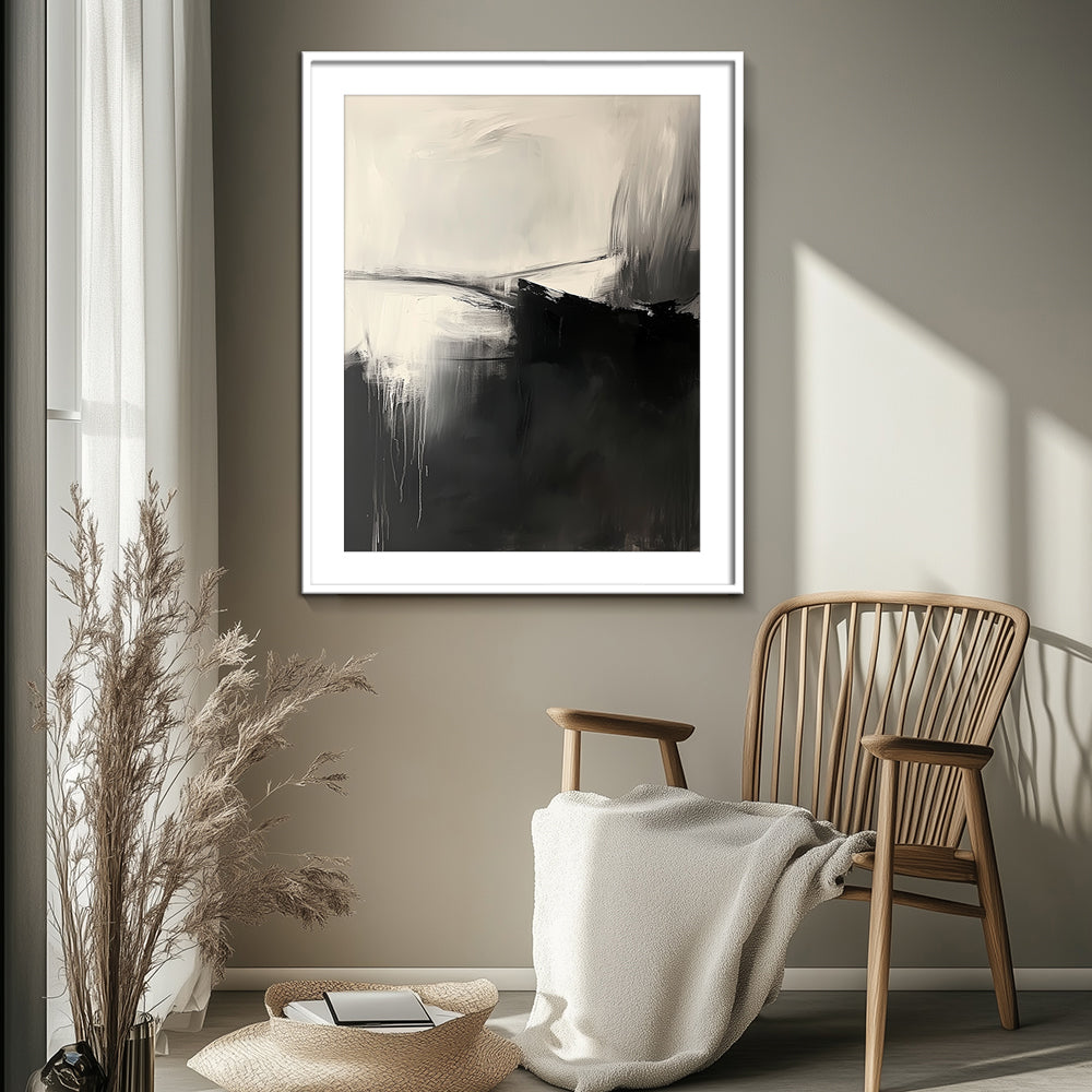 A high quality PVC frame with an off-white mount. Thickness of mount ranges from 1 - 4 inches depending on size of the artwork. The artwork is protected by a layer of clear glass or acrylic. Price: $$