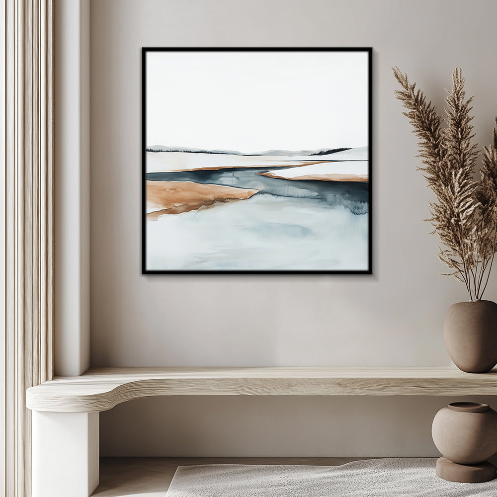 A high quality PVC frame with an off-white mount. Thickness of mount ranges from 1 - 4 inches depending on size of the artwork. The artwork is protected by a layer of clear glass or acrylic. Price: $$