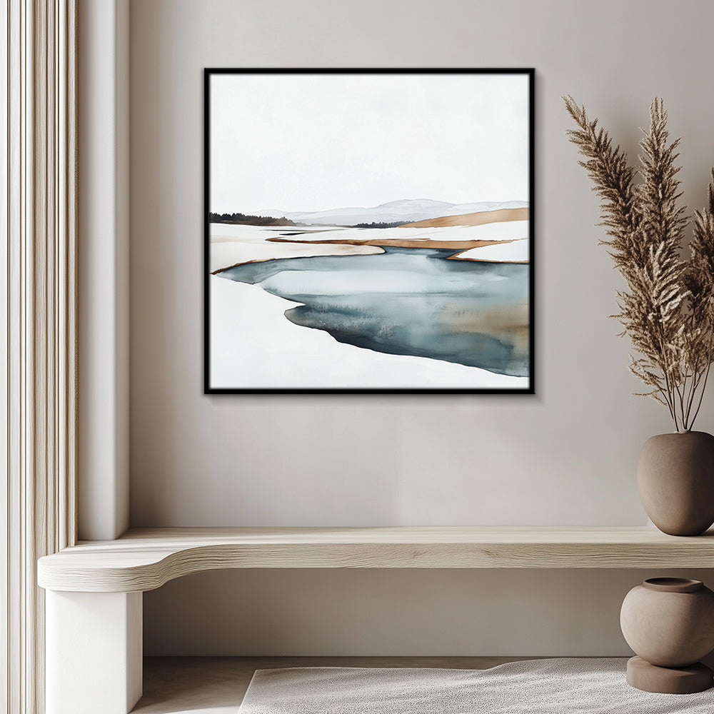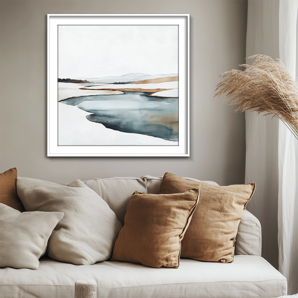 A high quality PVC frame with an off-white mount. Thickness of mount ranges from 1 - 4 inches depending on size of the artwork. The artwork is protected by a layer of clear glass or acrylic. Price: $$