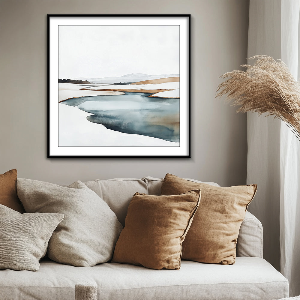 A high quality PVC frame with a front thickness of 0.5 inch and a depth of 1 inch. The artwork is protected by a layer of clear glass or acrylic. Price: $