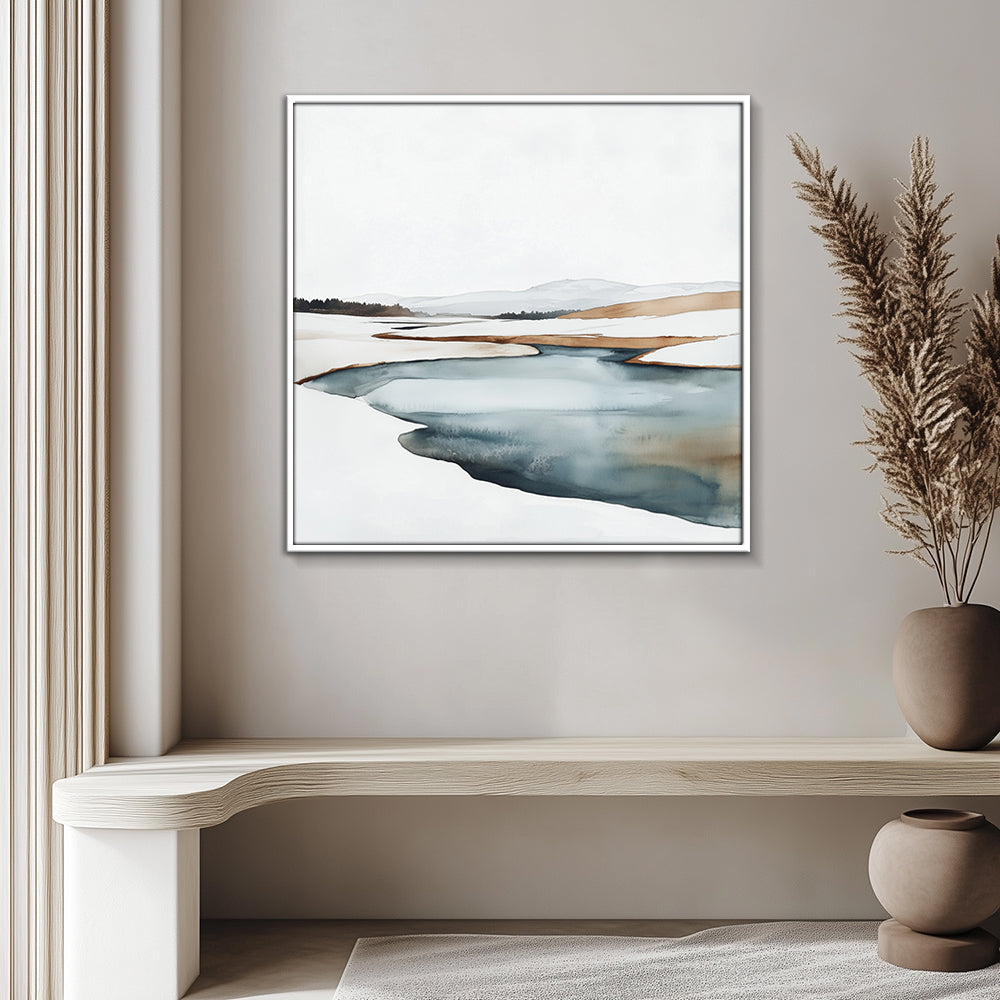 The canvas is wrapped and stretched similar to a gallery wrap and then mounted inside a wooden frame, leaving a small "gap", to create the illusion that the canvas is floating within the frame. Price: $$$