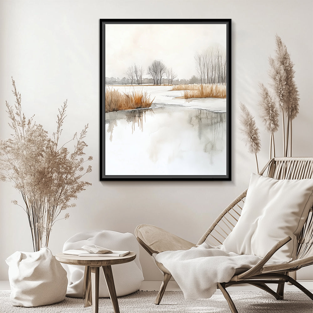 The canvas is wrapped and stretched similar to a gallery wrap and then mounted inside a wooden frame, leaving a small "gap", to create the illusion that the canvas is floating within the frame. Price: $$$