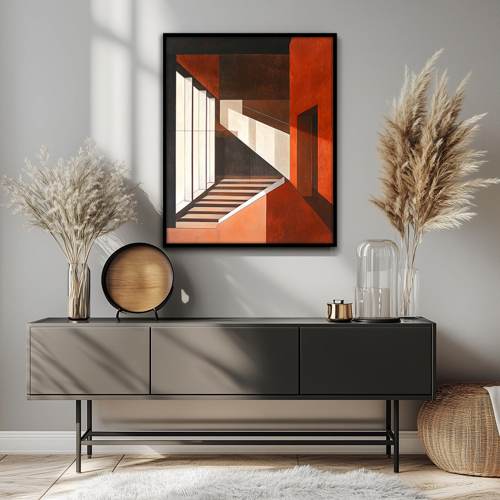 A high quality PVC frame with an off-white mount. Thickness of mount ranges from 1 - 4 inches depending on size of the artwork. The artwork is protected by a layer of clear glass or acrylic. Price: $$