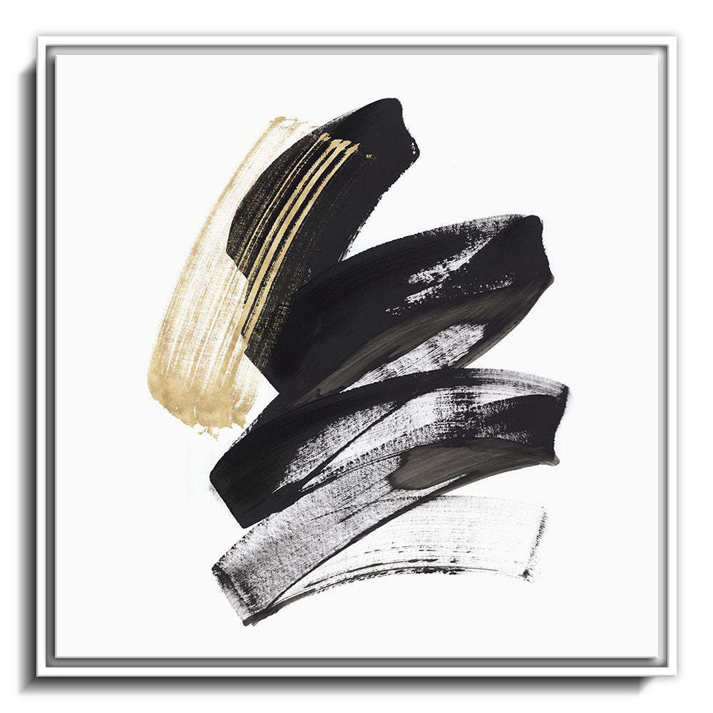 The canvas is wrapped and stretched similar to a gallery wrap and then mounted inside a wooden frame, leaving a small "gap", to create the illusion that the canvas is floating within the frame.