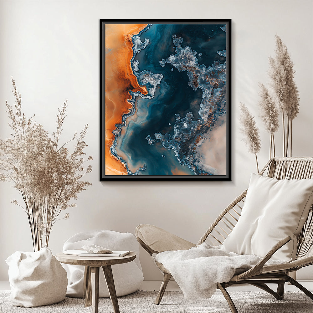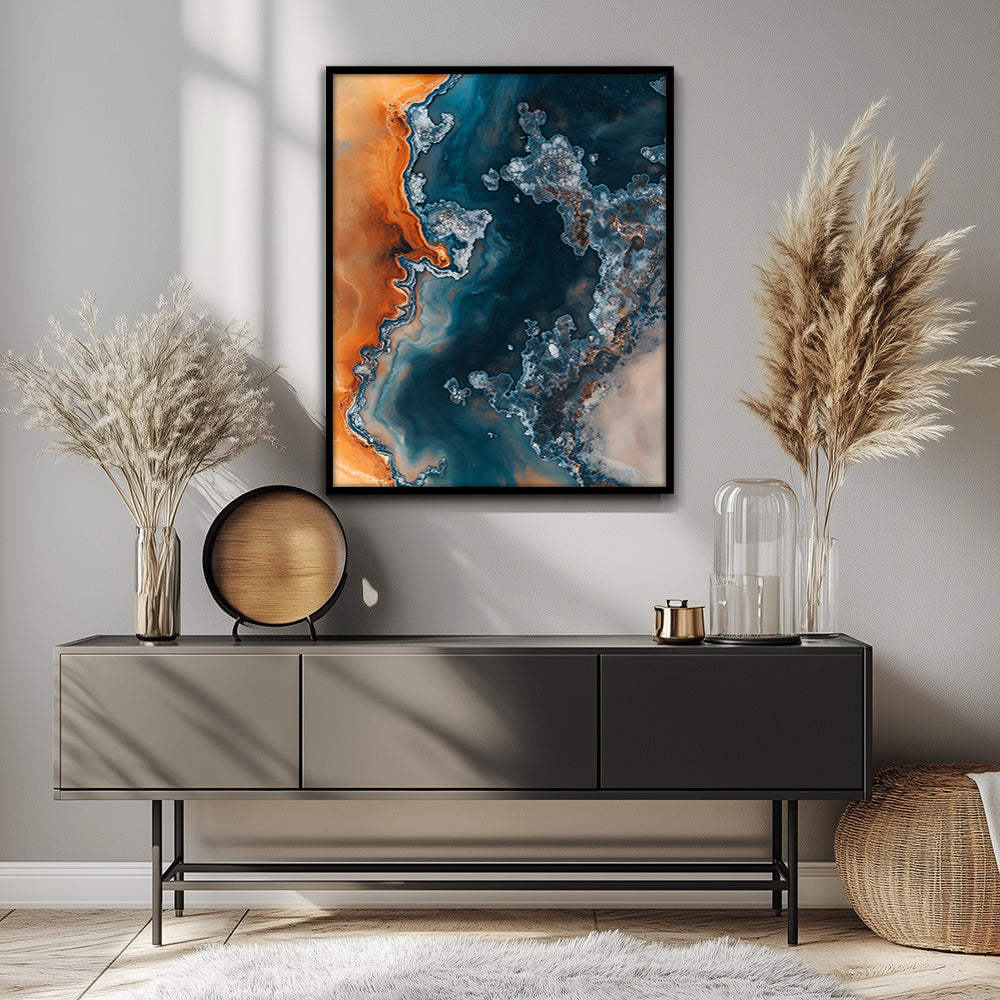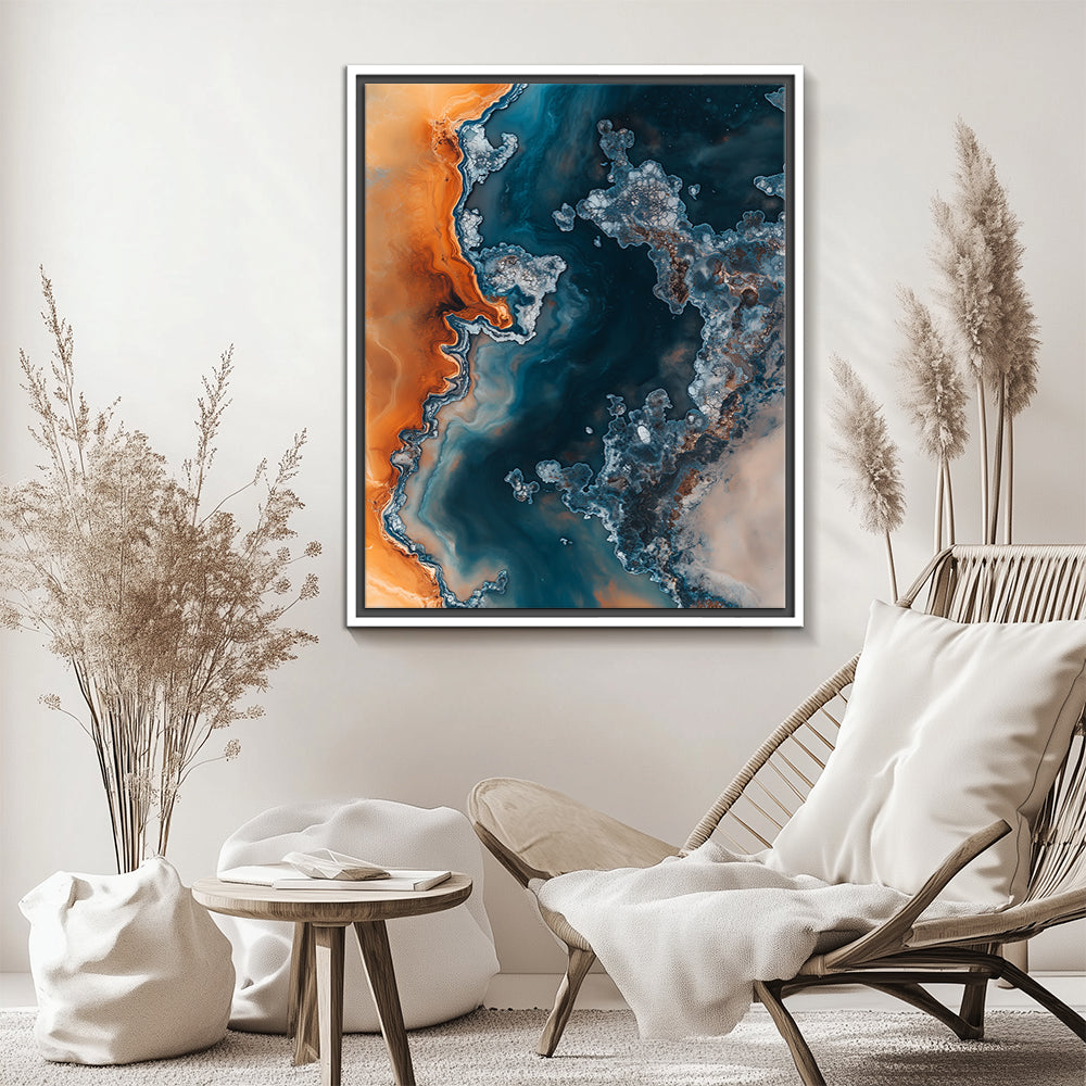 The canvas is wrapped and stretched similar to a gallery wrap and then mounted inside a wooden frame, leaving a small "gap", to create the illusion that the canvas is floating within the frame. Price: $$$