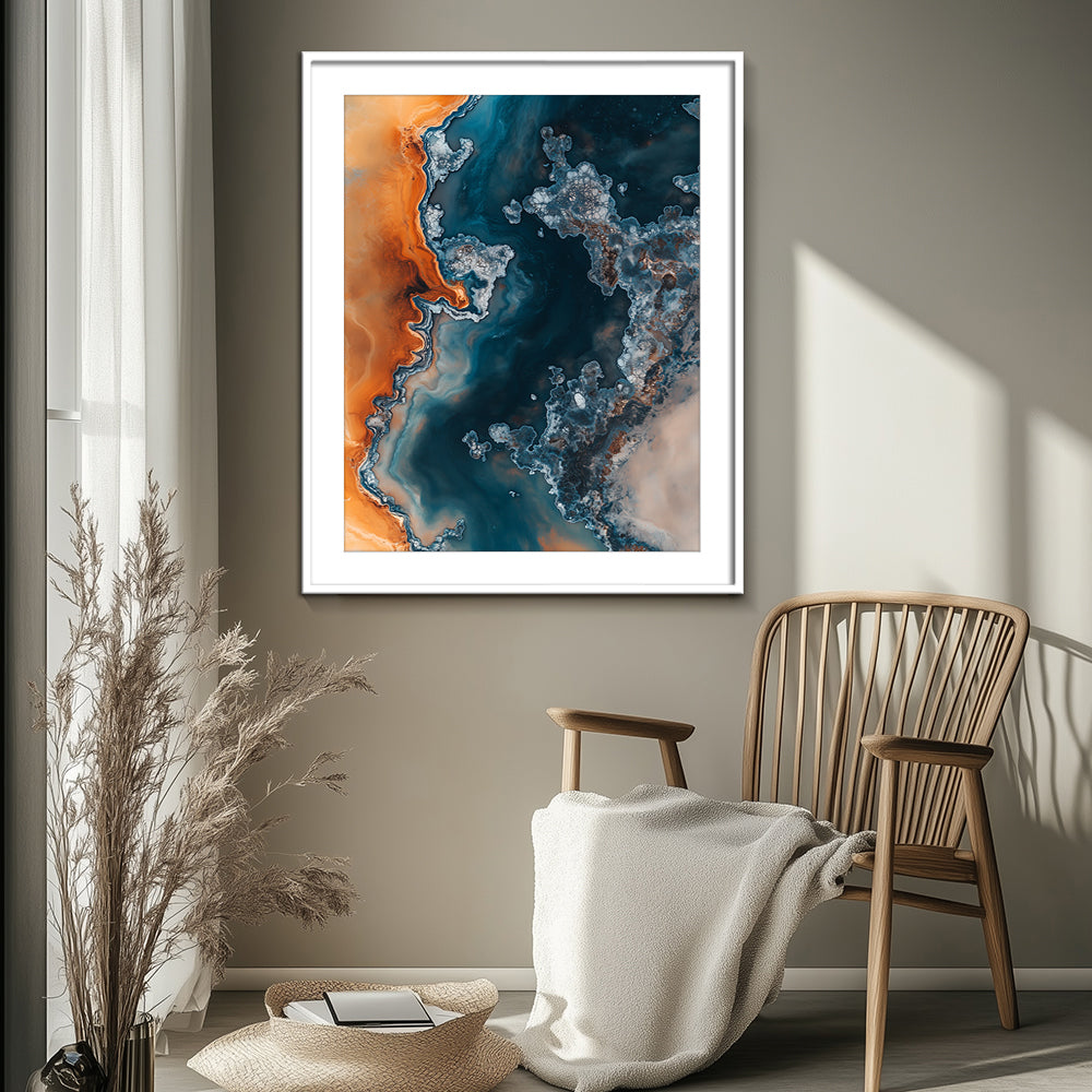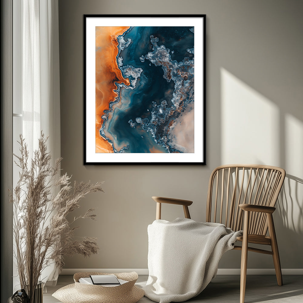 A high quality PVC frame with a front thickness of 0.5 inch and a depth of 1 inch. The artwork is protected by a layer of clear glass or acrylic. Price: $