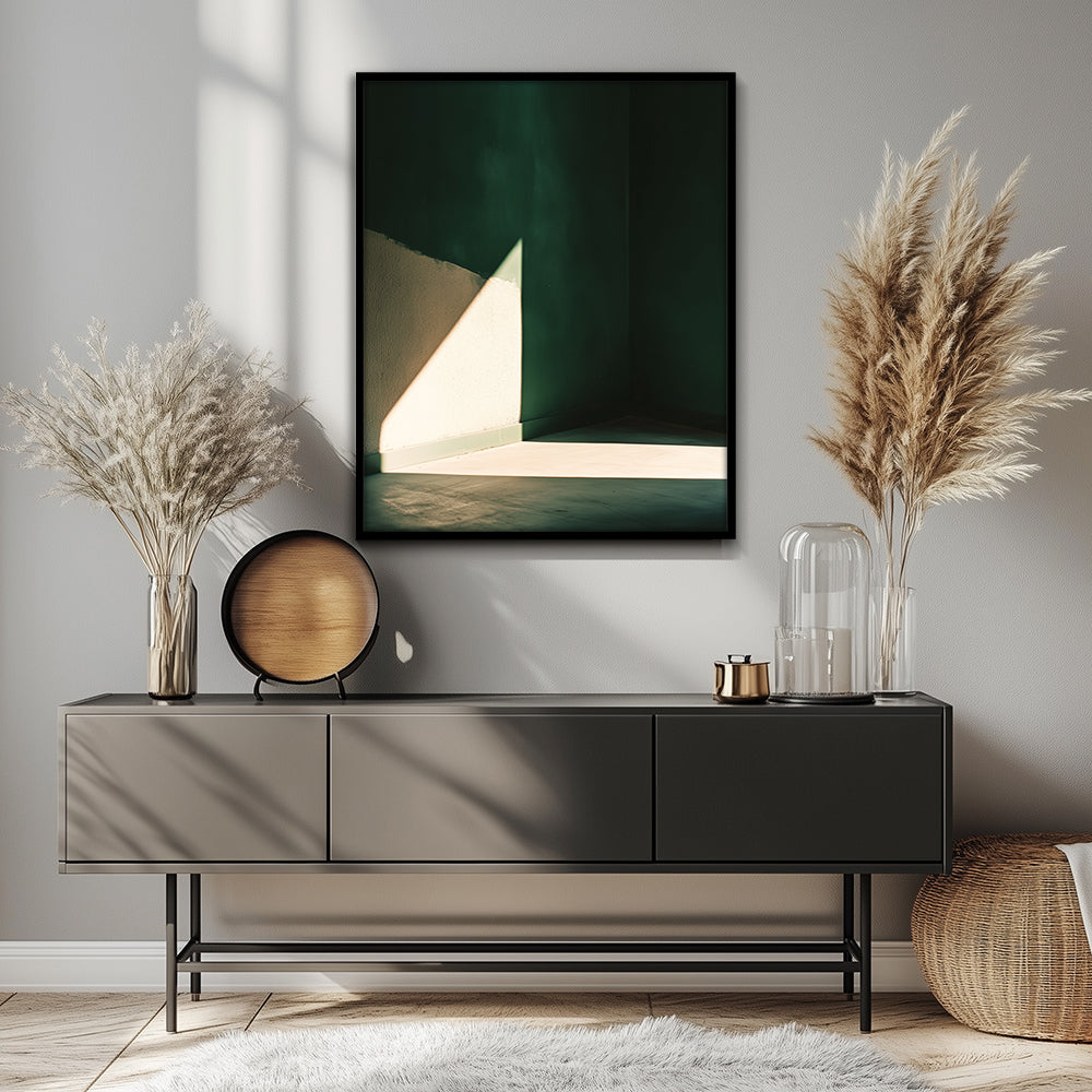 A high quality PVC frame with a front thickness of 0.5 inch and a depth of 1 inch. The artwork is protected by a layer of clear glass or acrylic. Price: $
