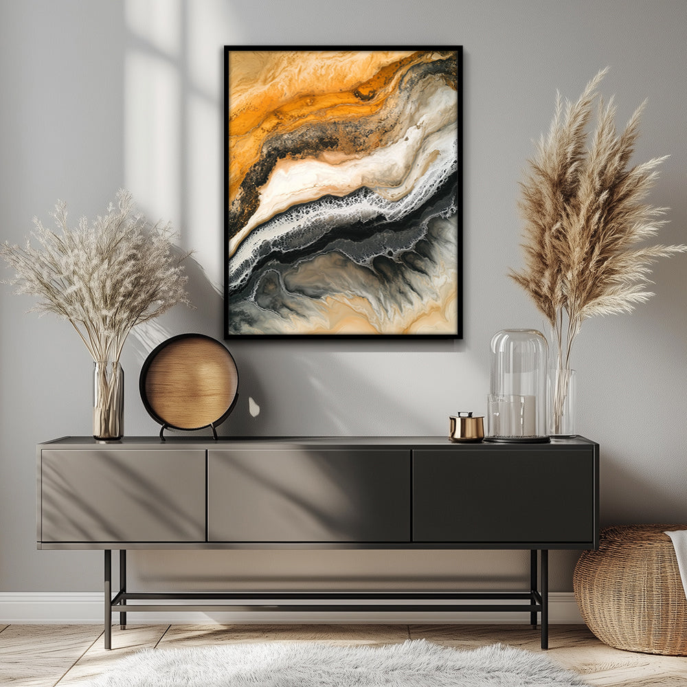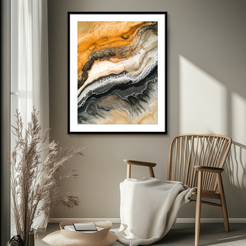 A high quality PVC frame with a front thickness of 0.5 inch and a depth of 1 inch. The artwork is protected by a layer of clear glass or acrylic. Price: $