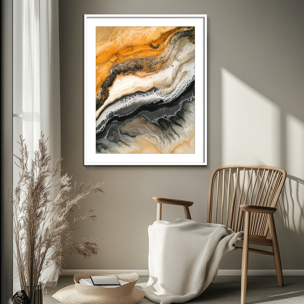 A high quality PVC frame with an off-white mount. Thickness of mount ranges from 1 - 4 inches depending on size of the artwork. The artwork is protected by a layer of clear glass or acrylic. Price: $$