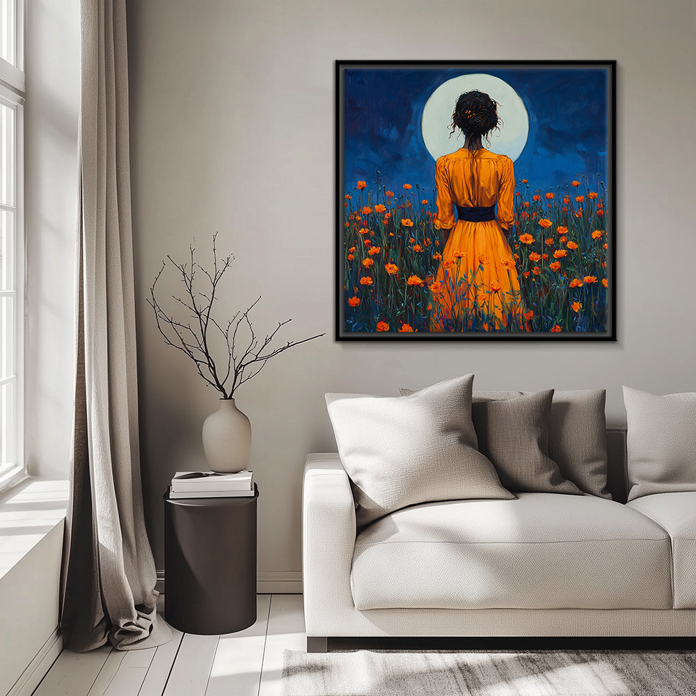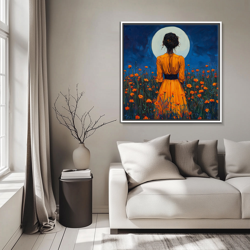 The canvas is wrapped and stretched similar to a gallery wrap and then mounted inside a wooden frame, leaving a small "gap", to create the illusion that the canvas is floating within the frame. Price: $$$