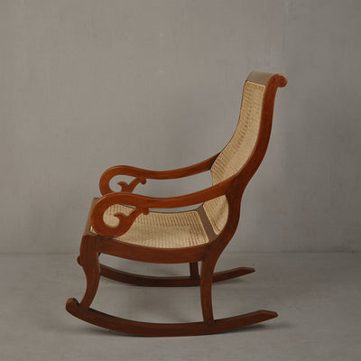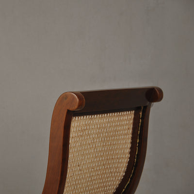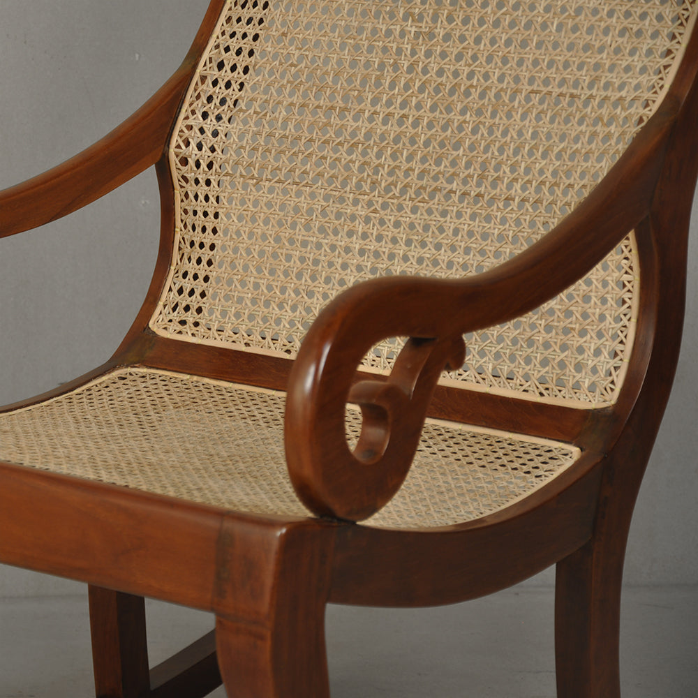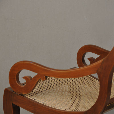REPRODUCTION This piece is reproduced in teakwood and finished with Natural polish and a protective coat of clear wax. The caning weave is a '7 step' pattern using high quality cane from Andamans.