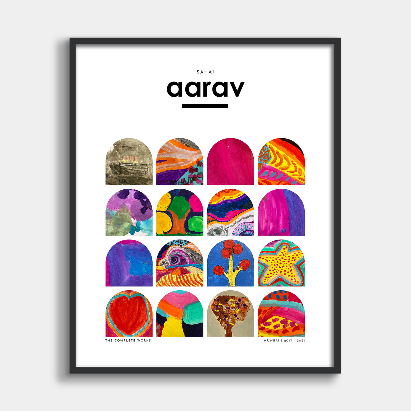 This collage theme requires anywhere from 10 to 20 artworks and is currently depicted with another child's paintings. After you place your order, an automated email will be sent to you to collect images of your artworks, which will be used to recreate this collage for you.