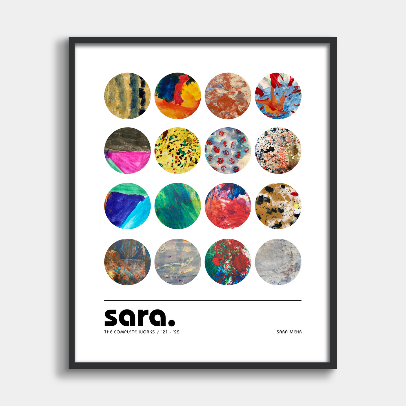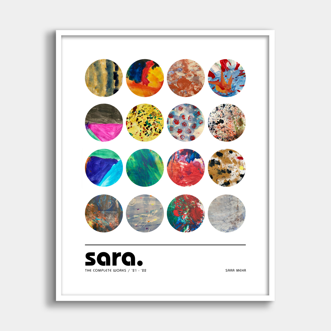 This collage theme requires anywhere from 10 to 20 artworks and is currently depicted with another child's paintings. After you place your order, an automated email will be sent to you to collect images of your artworks, which will be used to recreate this collage for you.