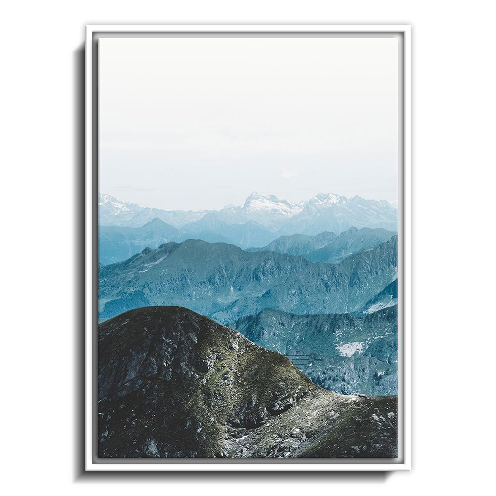 The canvas is wrapped and stretched similar to a gallery wrap and then mounted inside a wooden frame, leaving a small "gap", to create the illusion that the canvas is floating within the frame.