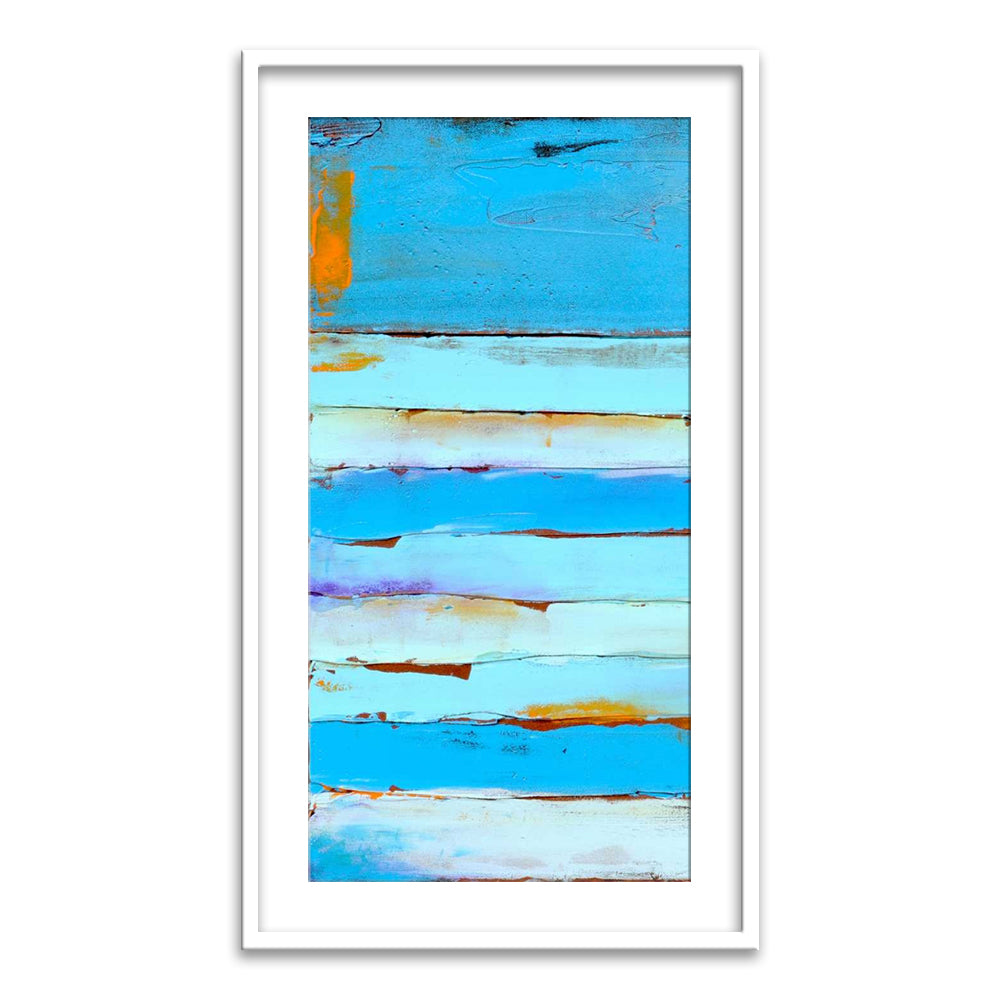 A high quality PVC frame with an off-white mount. Thickness of mount ranges from 1 - 4 inches depending on size of the artwork.