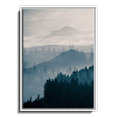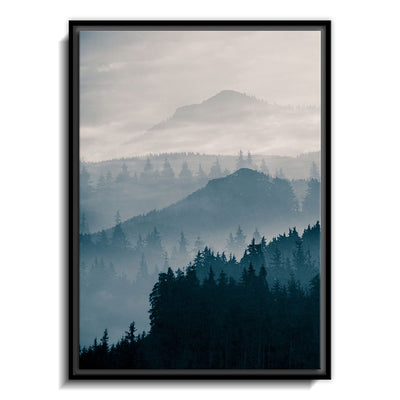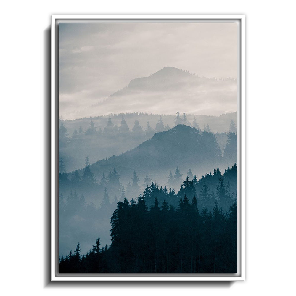 The canvas is wrapped and stretched similar to a gallery wrap and then mounted inside a wooden frame, leaving a small "gap", to create the illusion that the canvas is floating within the frame.