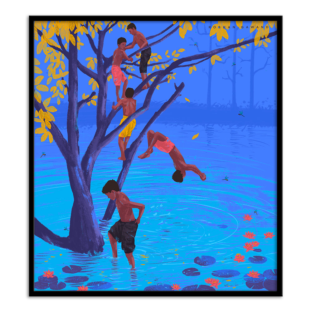Roshan Gawand is a Mumbai based artist and a graduate of the L S Raheja School of Art. His work is deeply influenced by village life and merges Indian culture, portraits & elements in nature.