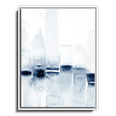 The canvas is wrapped and stretched similar to a gallery wrap and then mounted inside a wooden frame, leaving a small "gap", to create the illusion that the canvas is floating within the frame.