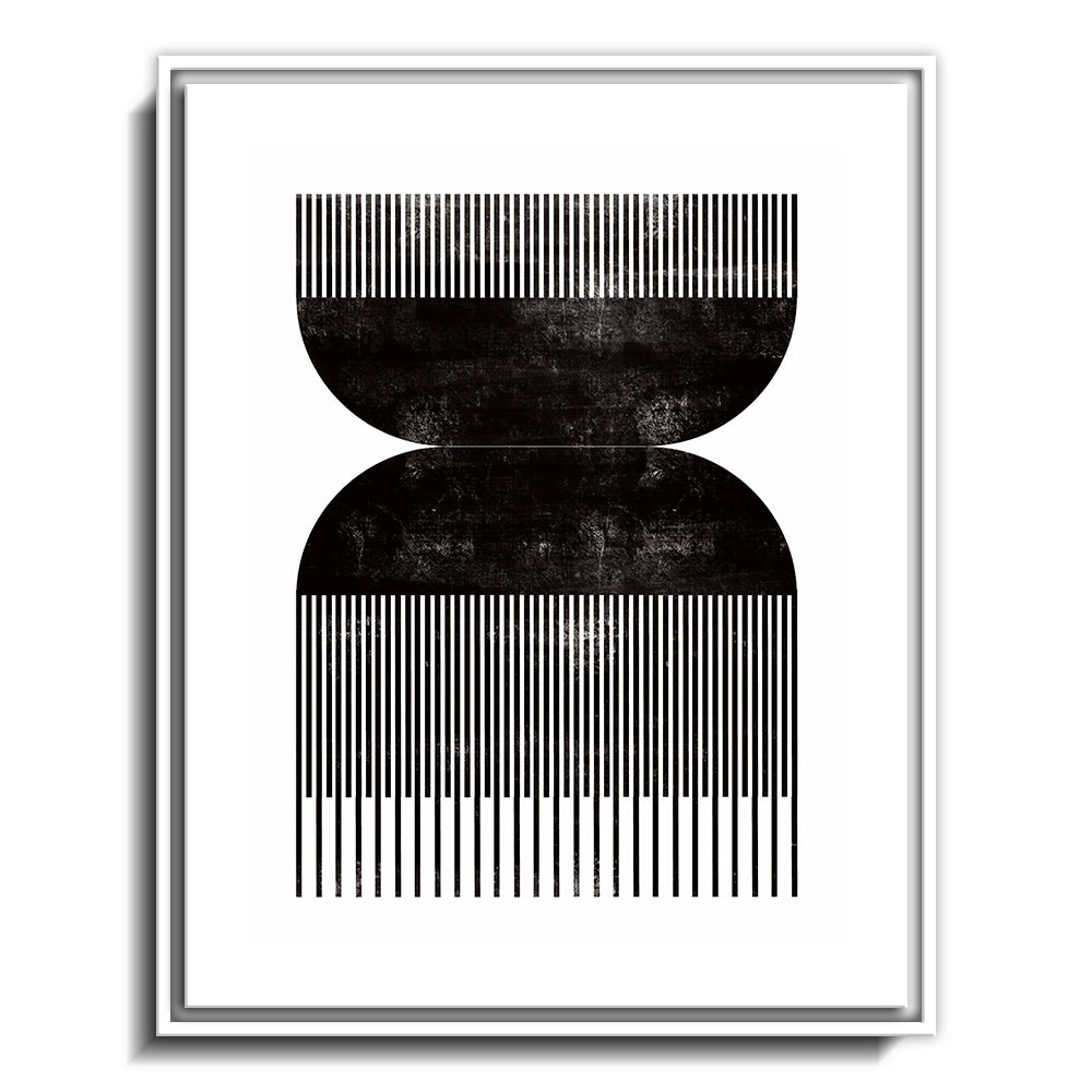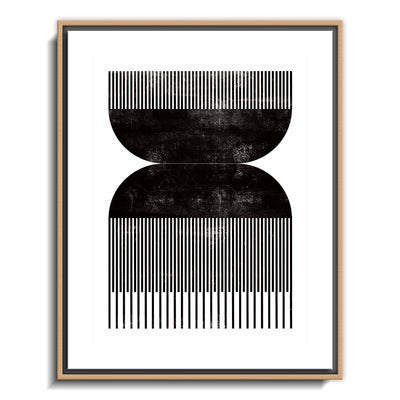 The canvas is wrapped and stretched similar to a gallery wrap and then mounted inside a wooden frame, leaving a small "gap", to create the illusion that the canvas is floating within the frame.